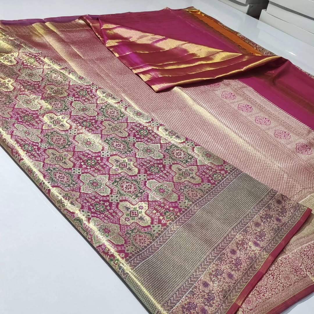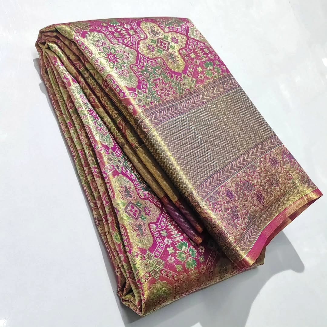 Hot Pink Kanchipuram Handloom Tissue Brocade Meenakari Silk Saree