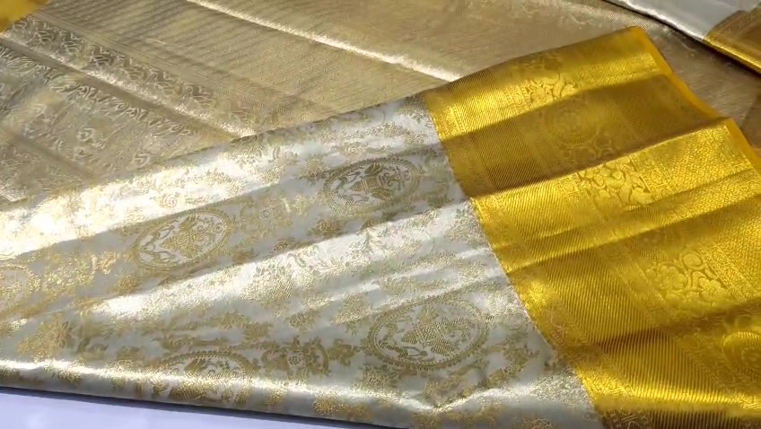 Ivory Kanchipuram Handloom Tissue Brocade Silk Saree