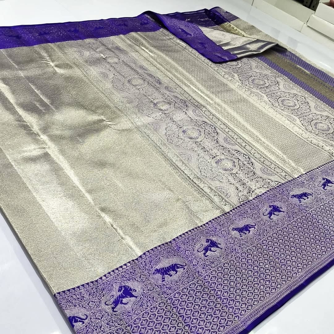 Lavender Kanchipuram Handloom Tissue Brocade Meenakari Silk Saree