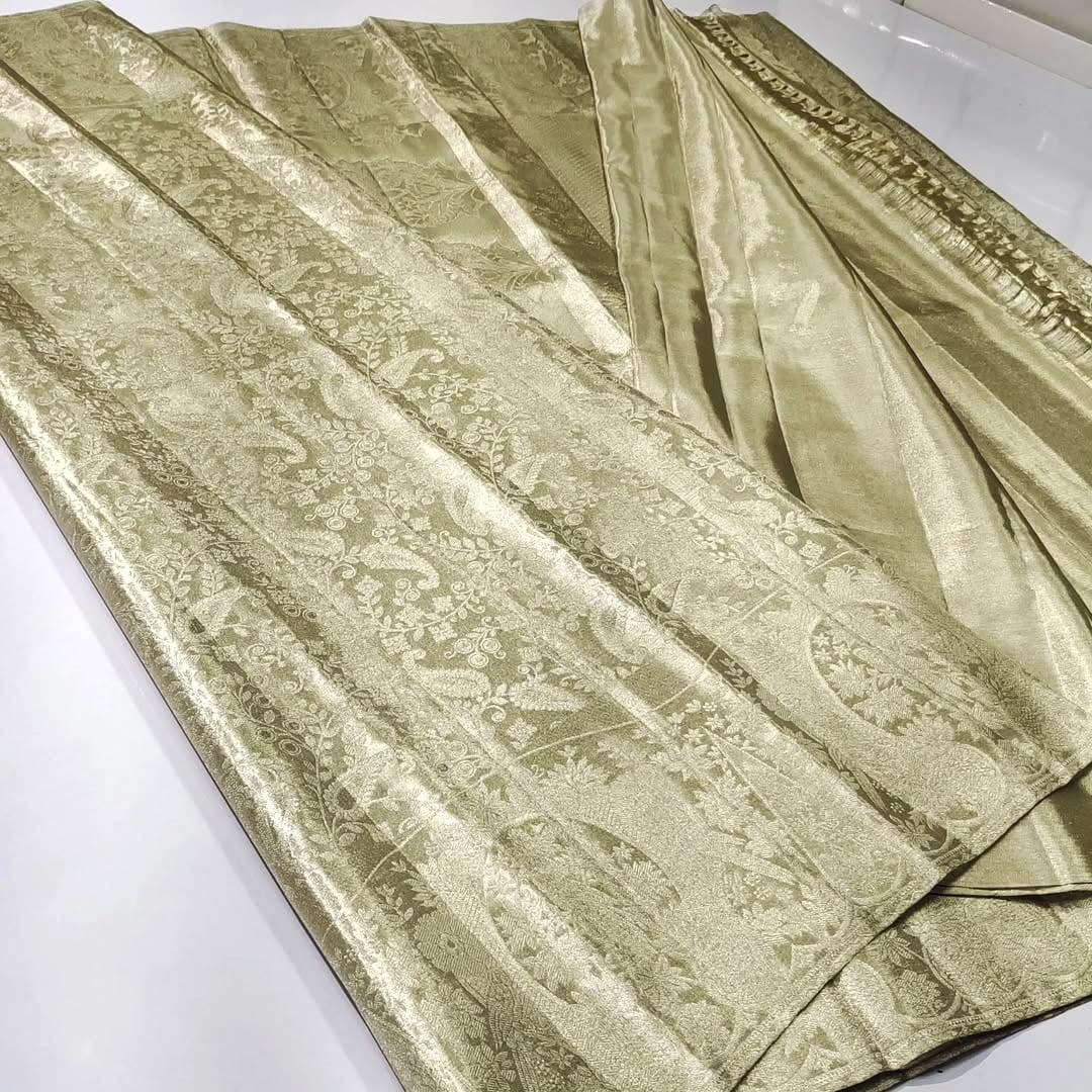 Mehandi Green Kanchipuram Handloom Tissue Brocade Silk Saree