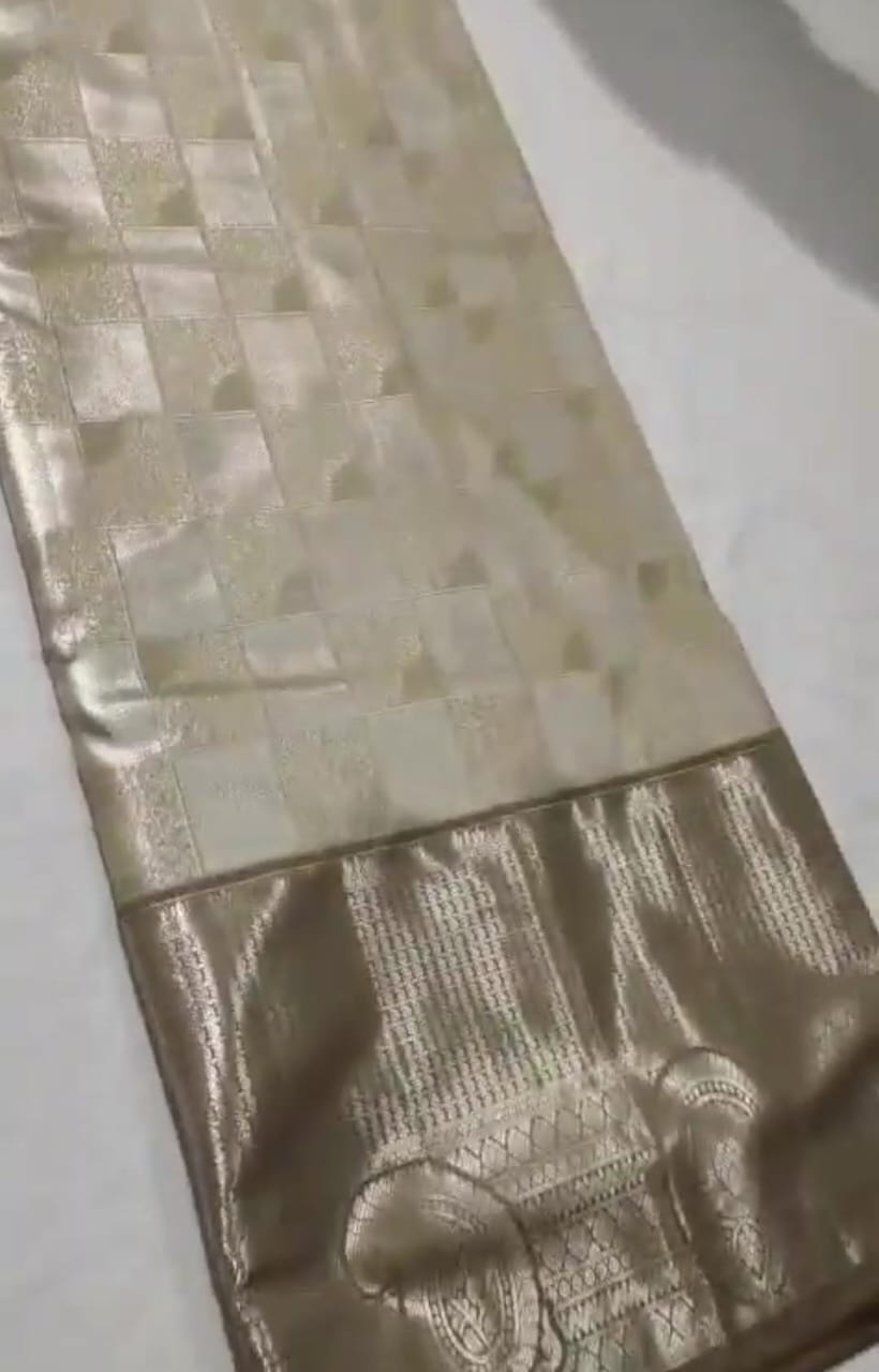 Ivory Semi Kanchipuram Tissue Silk Saree