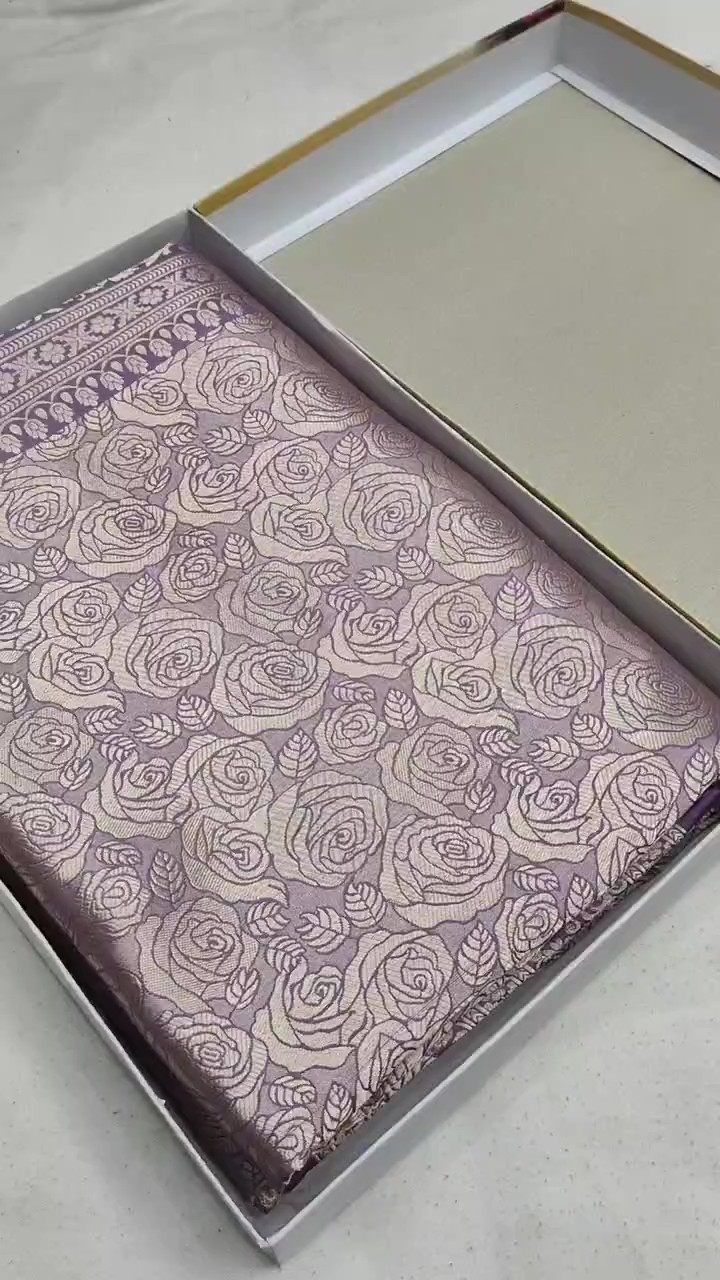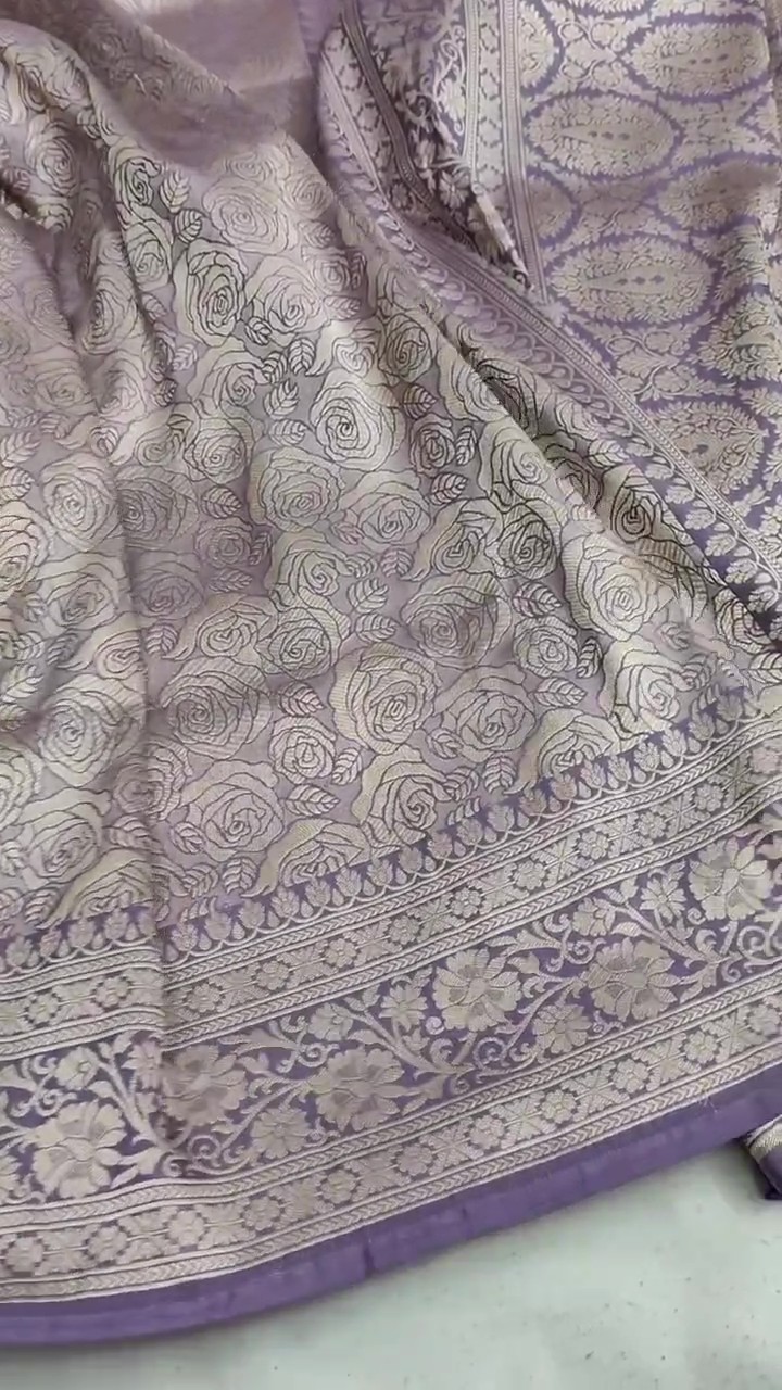 Lavender Banarasi Handloom Katan Silk Brocade Saree