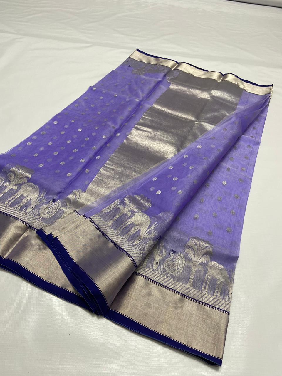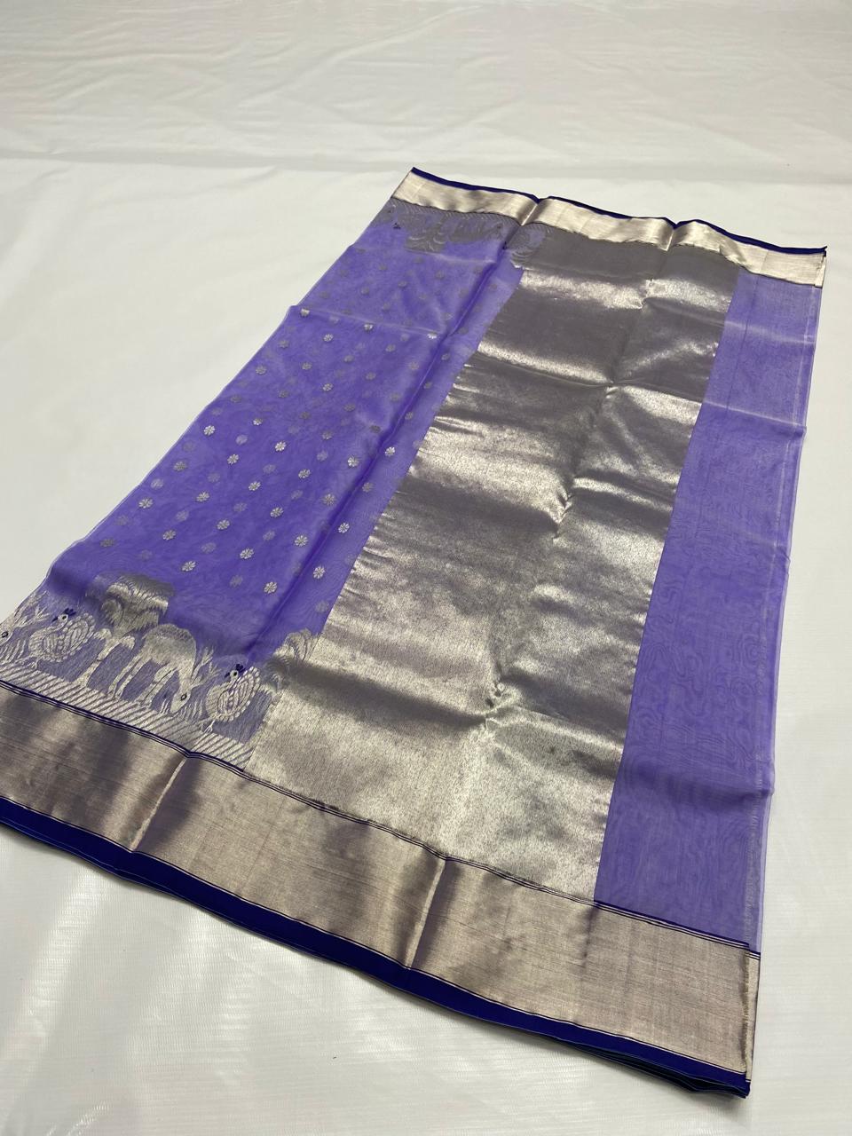 Lavender Chanderi Handloom Katan Silk Saree