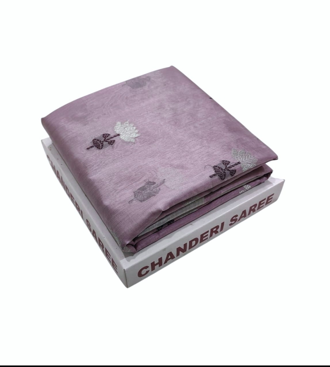 Lavender Chanderi Handloom Pattu Silk Meenakari Saree