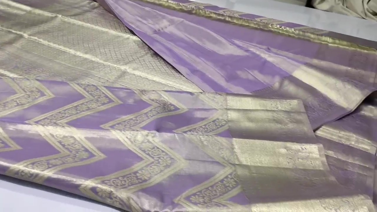 Lavender Kanchipuram Handloom Tissue Brocade Silk Saree