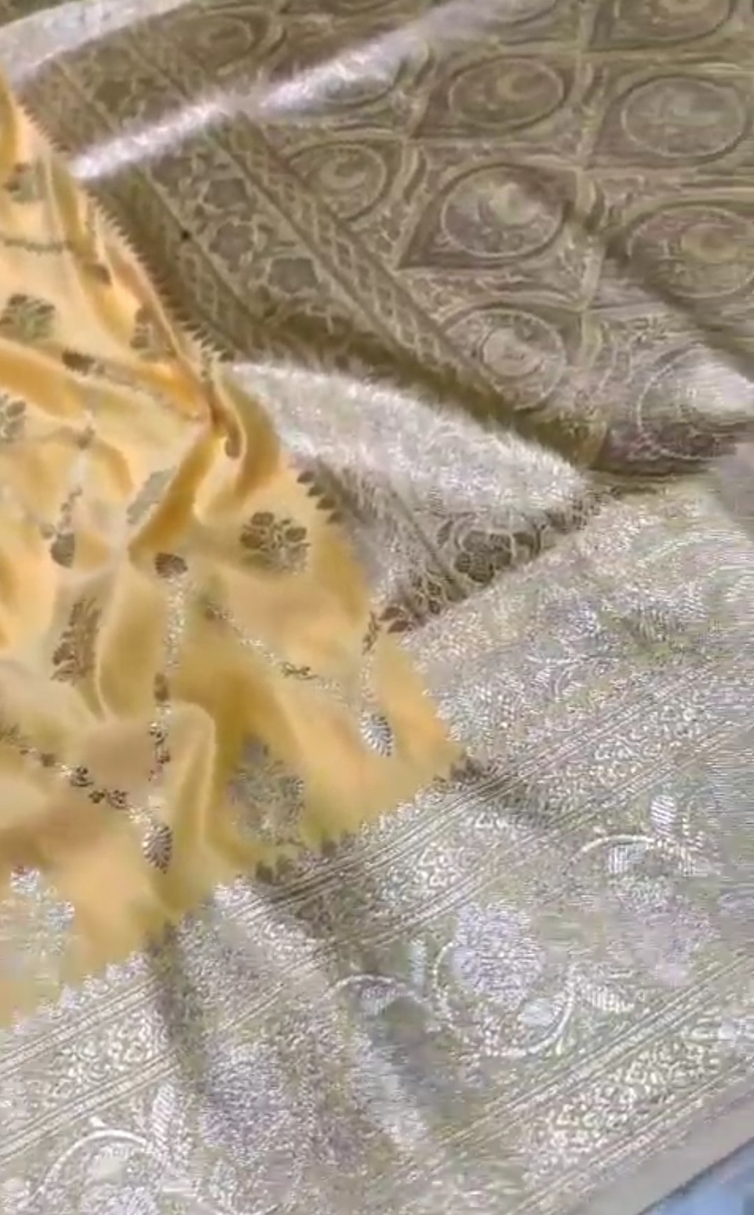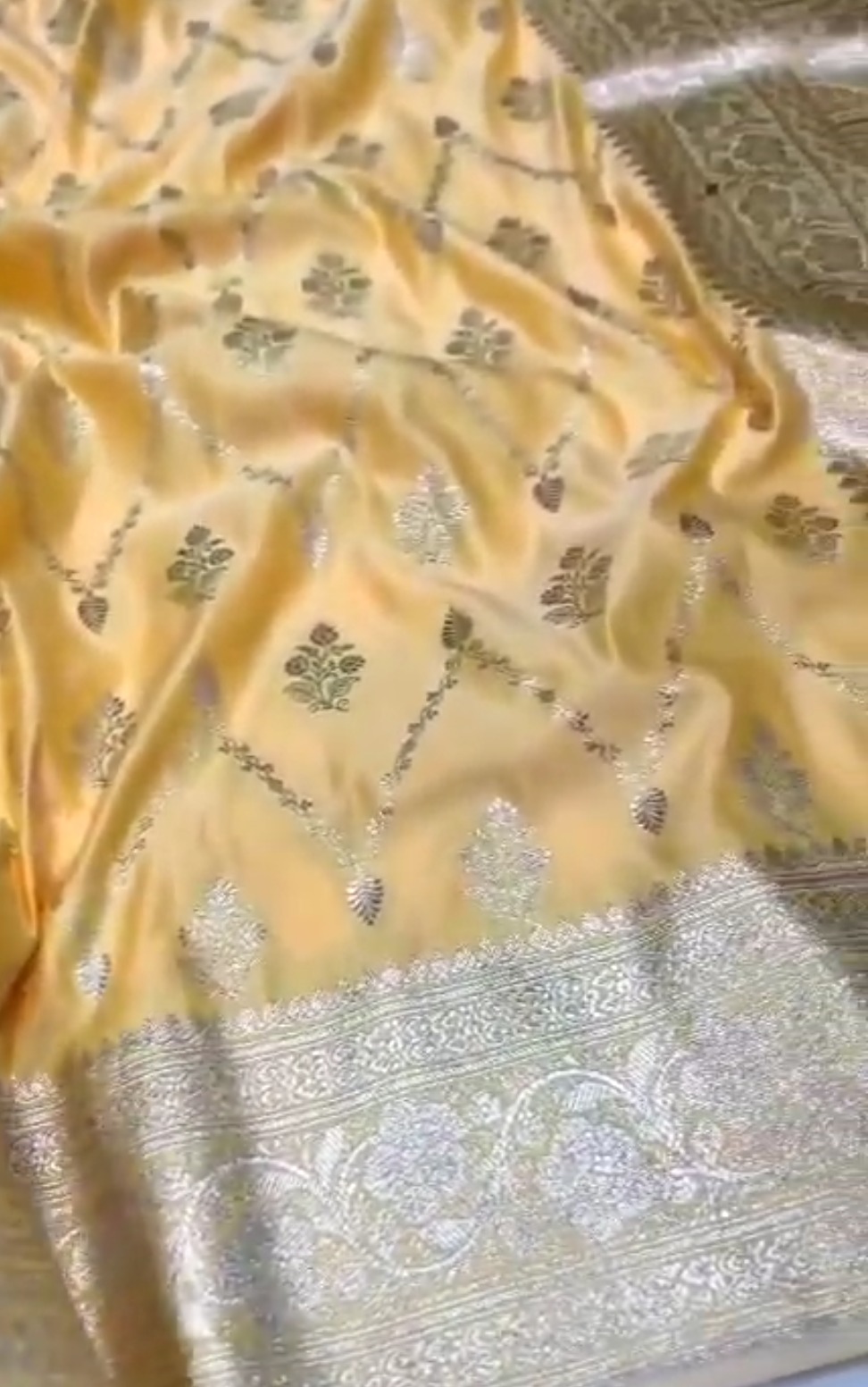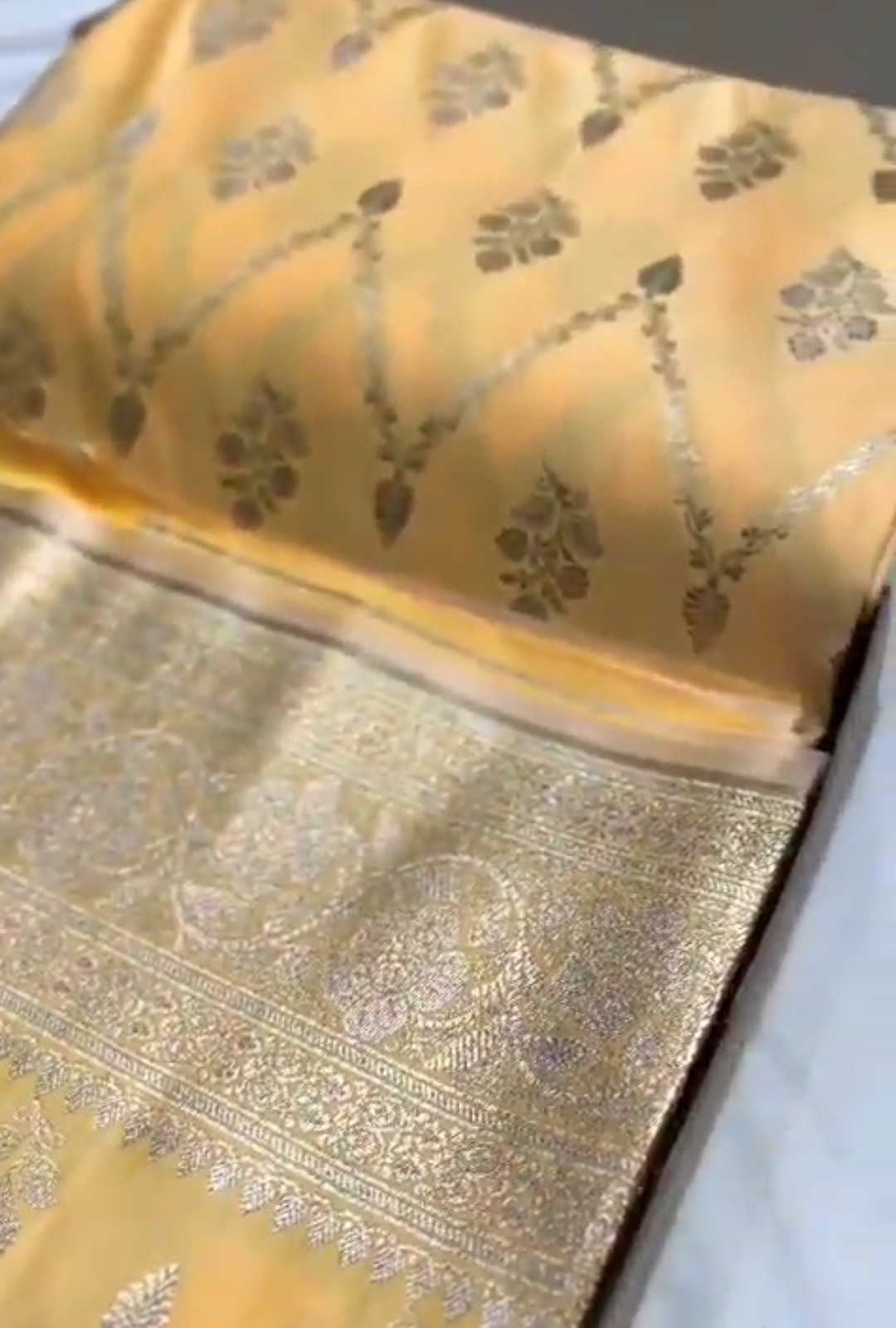 Lemon Yellow Banarasi Satin Katan Silk Saree