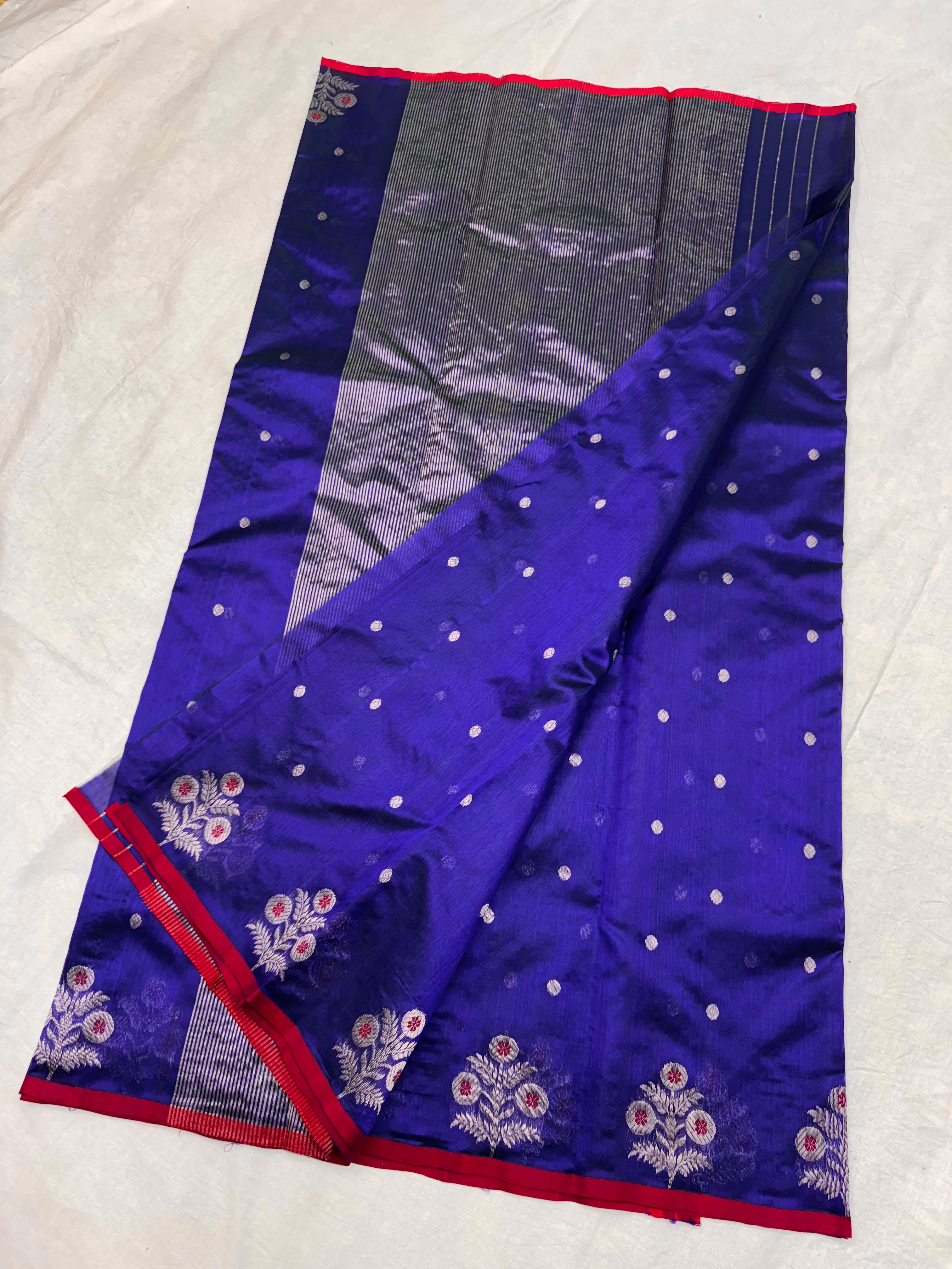 Dark Blue Chanderi Handloom Pattu Silk Sona Rupa Saree