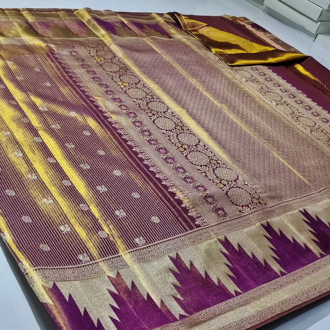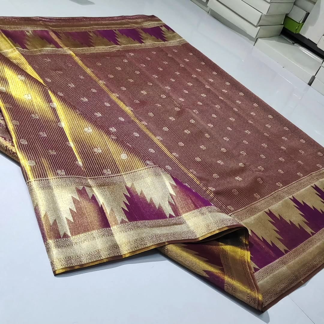 Temples, Brocade, Stripes, Meenakari, Silver Zari, Gold Zari