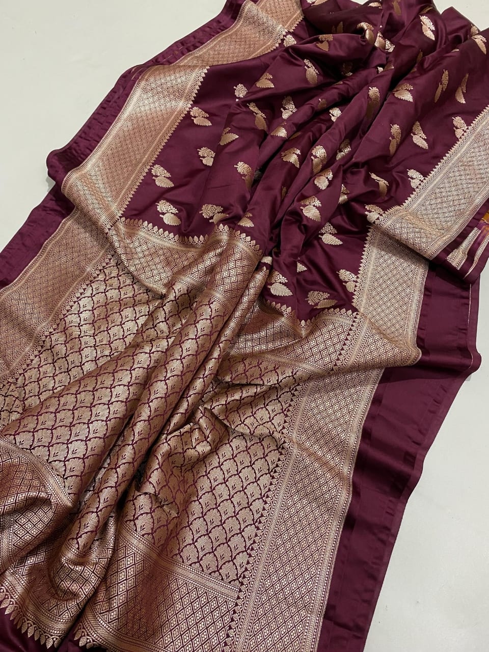 Wine Banarasi Satin Katan Silk Saree