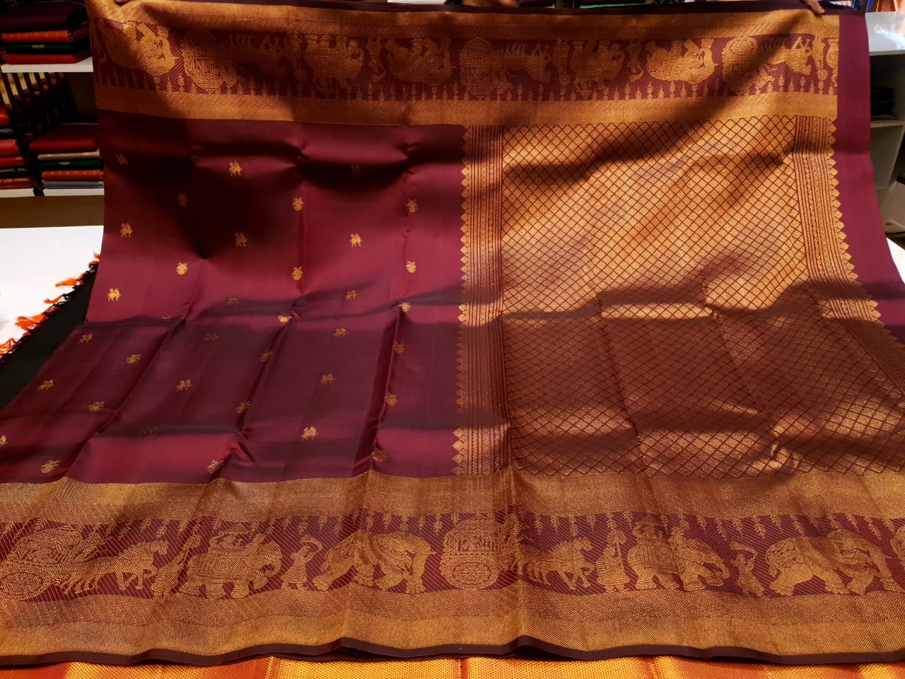 Wine Kanchipuram Handloom 2G Gold Pattu Silk Saree