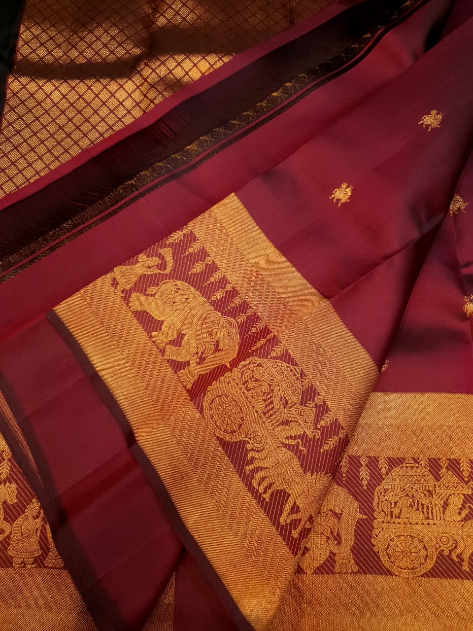 Maroon Kanchipuram Handloom 2G Gold Pattu Silk Saree