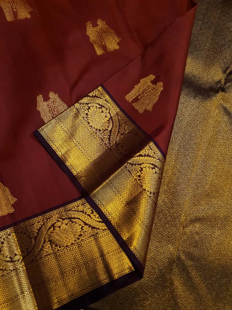 Maroon Kanchipuram Handloom 2G Gold Kalyana Pallakku Silk Saree