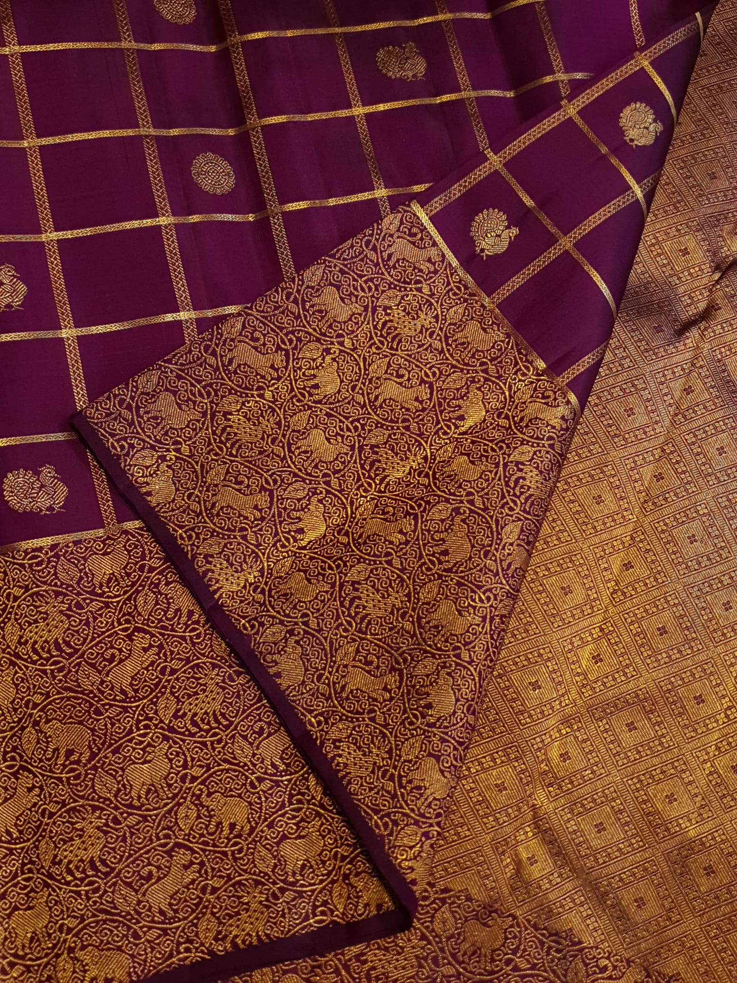 Maroon Kanchipuram Handloom 2G Gold Pattu Silk Saree