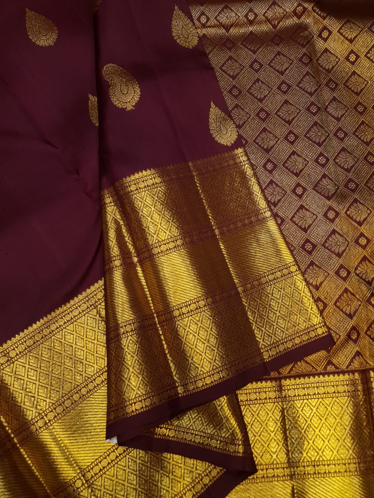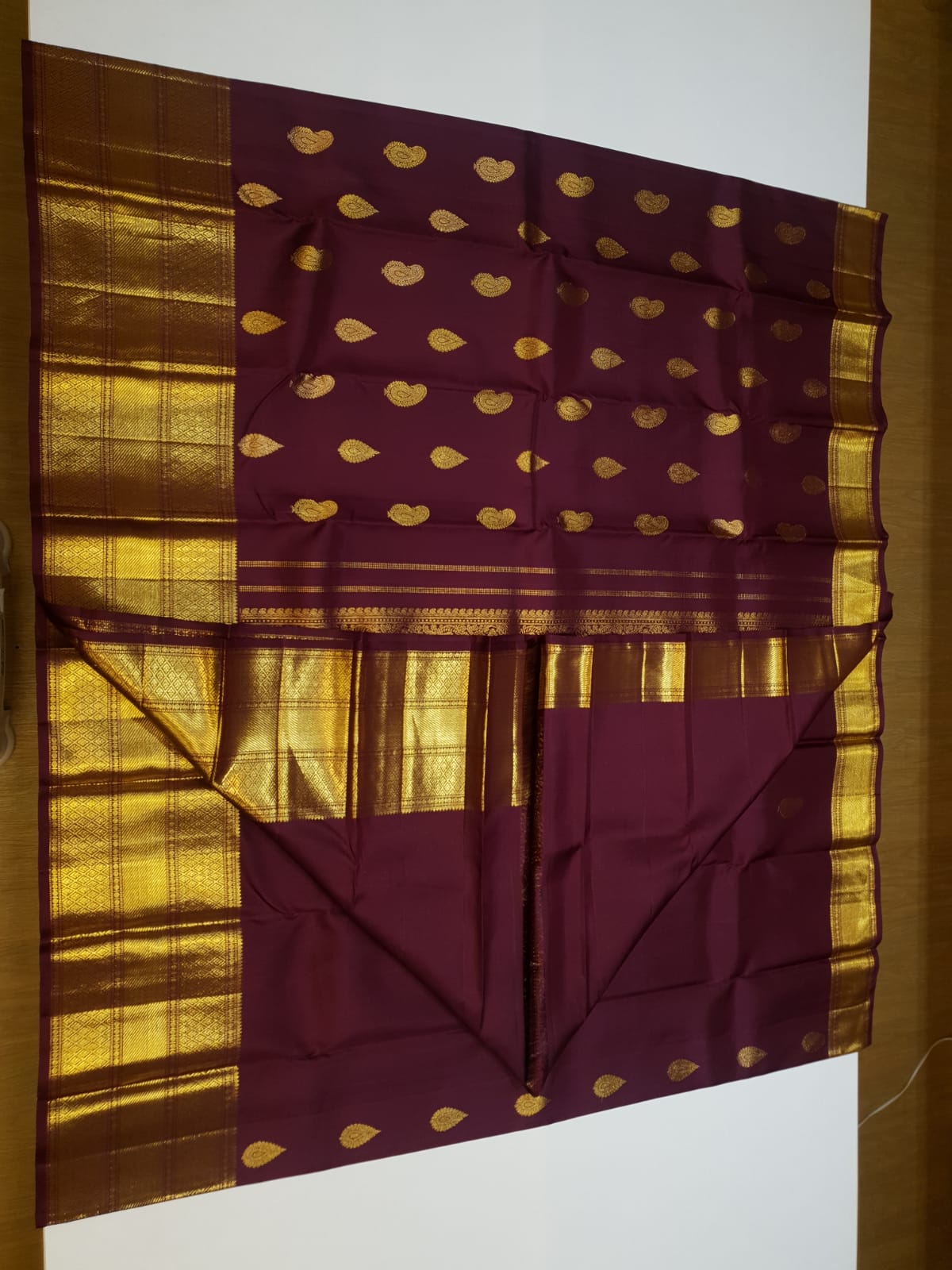 Wine Kanchipuram Handloom 2G Gold Pattu Silk Saree