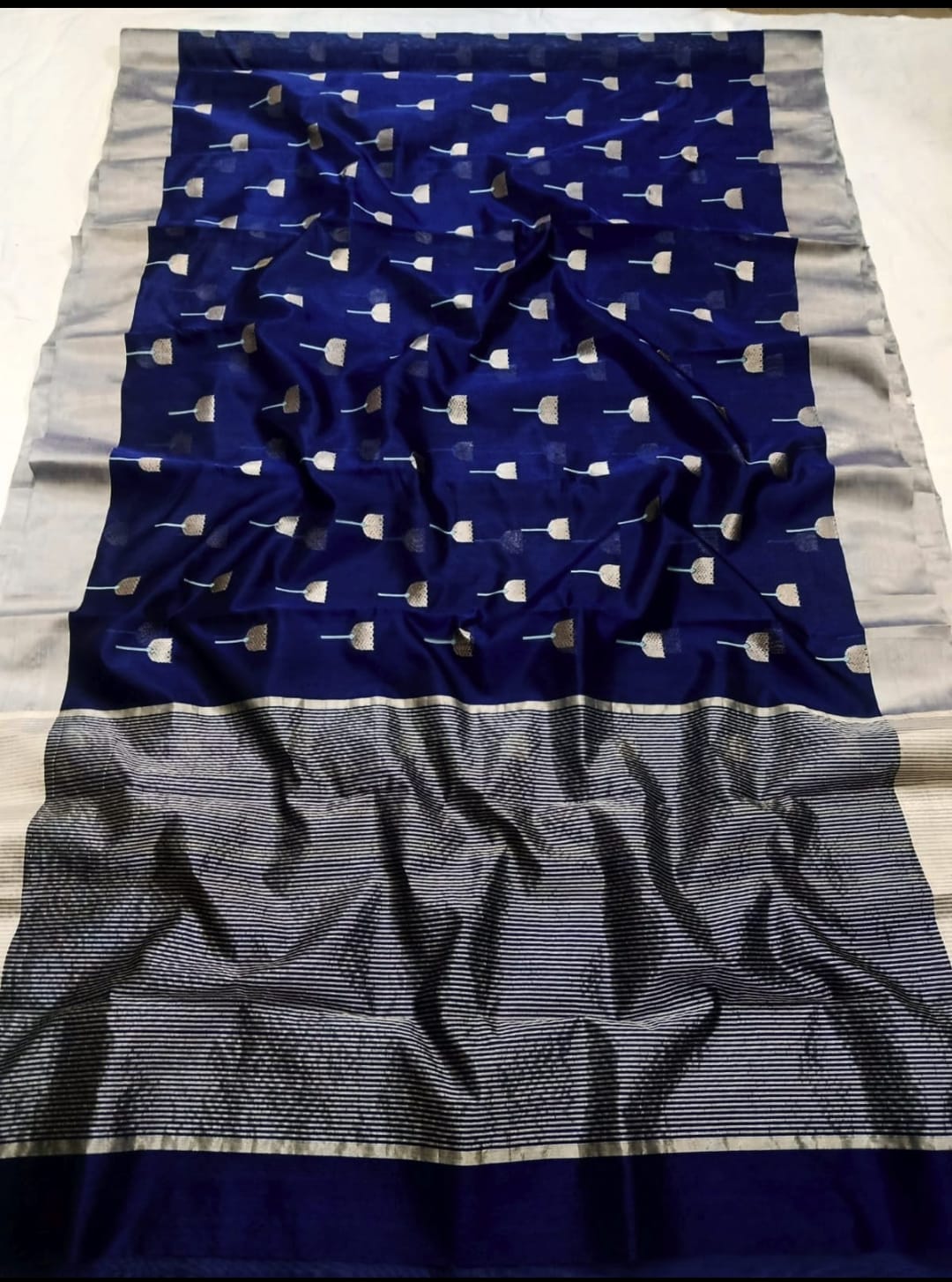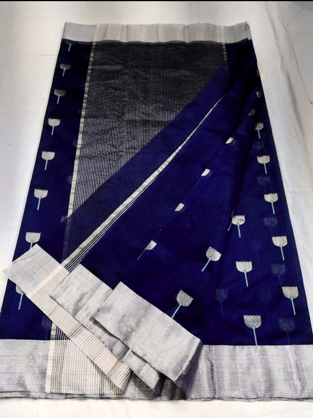 Dark Blue Chanderi Handloom Pattu Silk Sona Rupa Saree