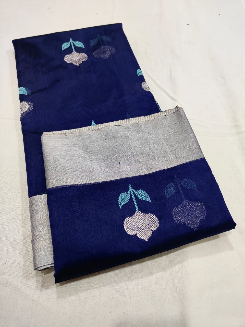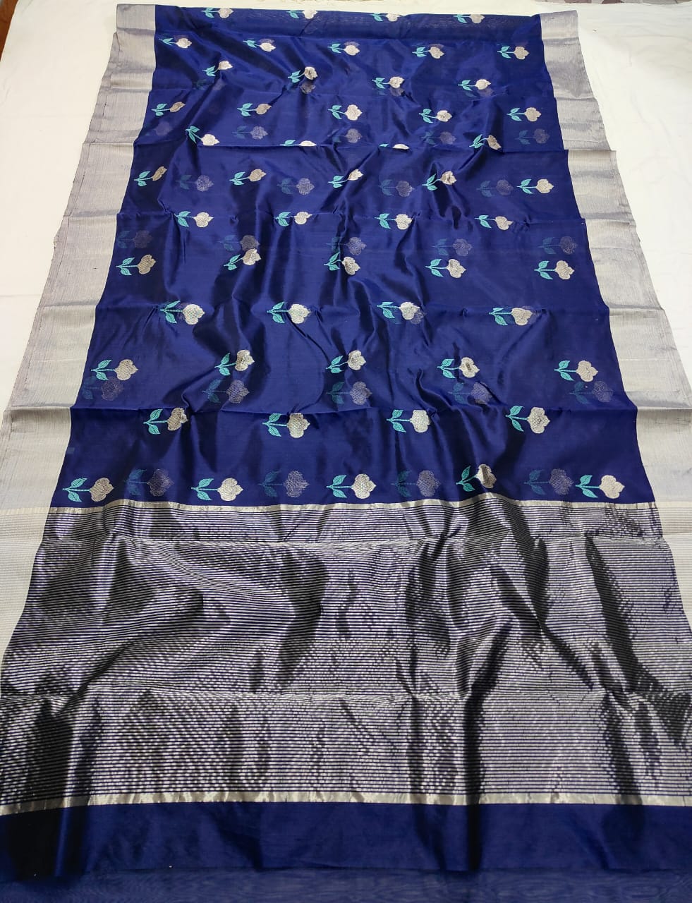 Dark Blue Chanderi Handloom Pattu Silk Sona Rupa Saree