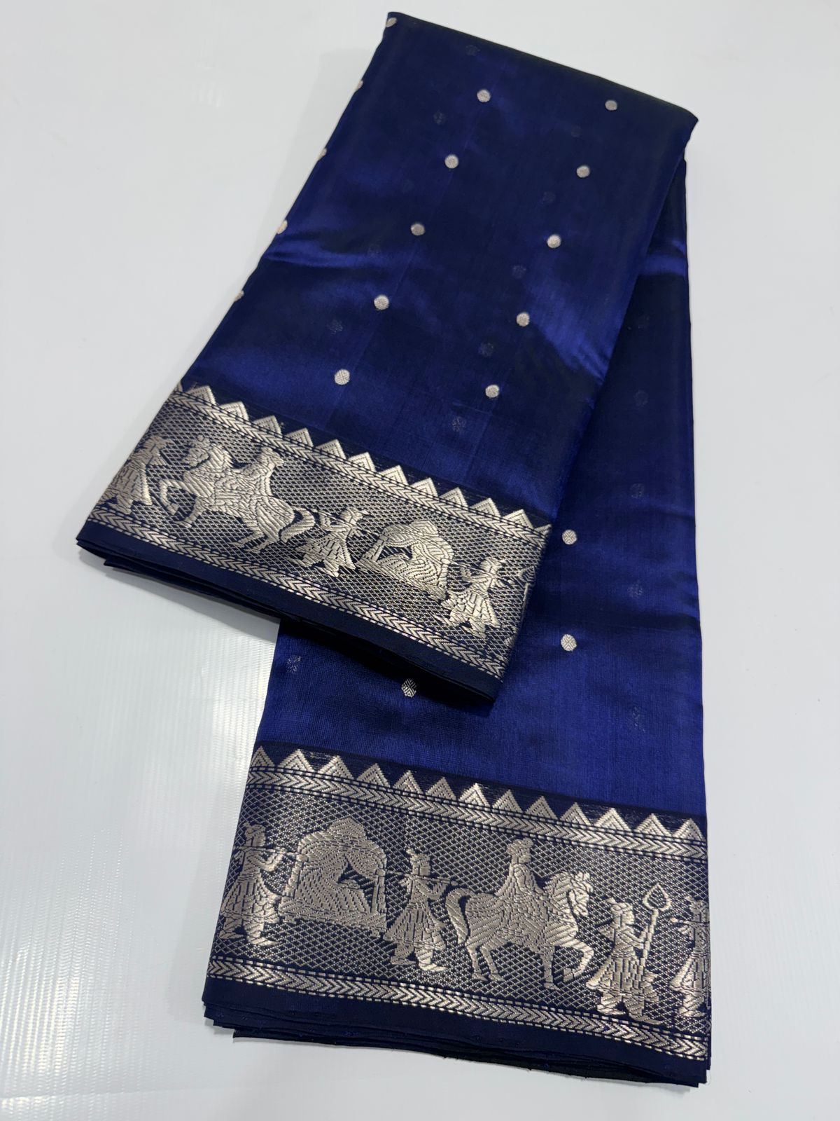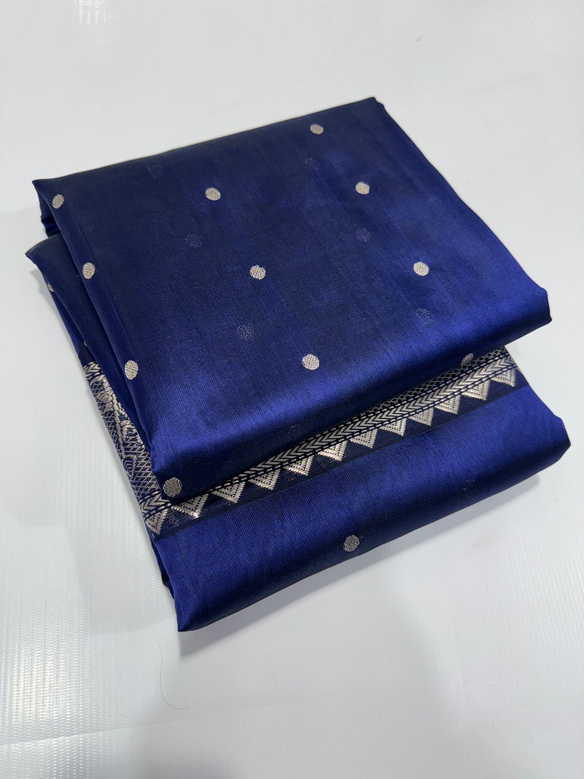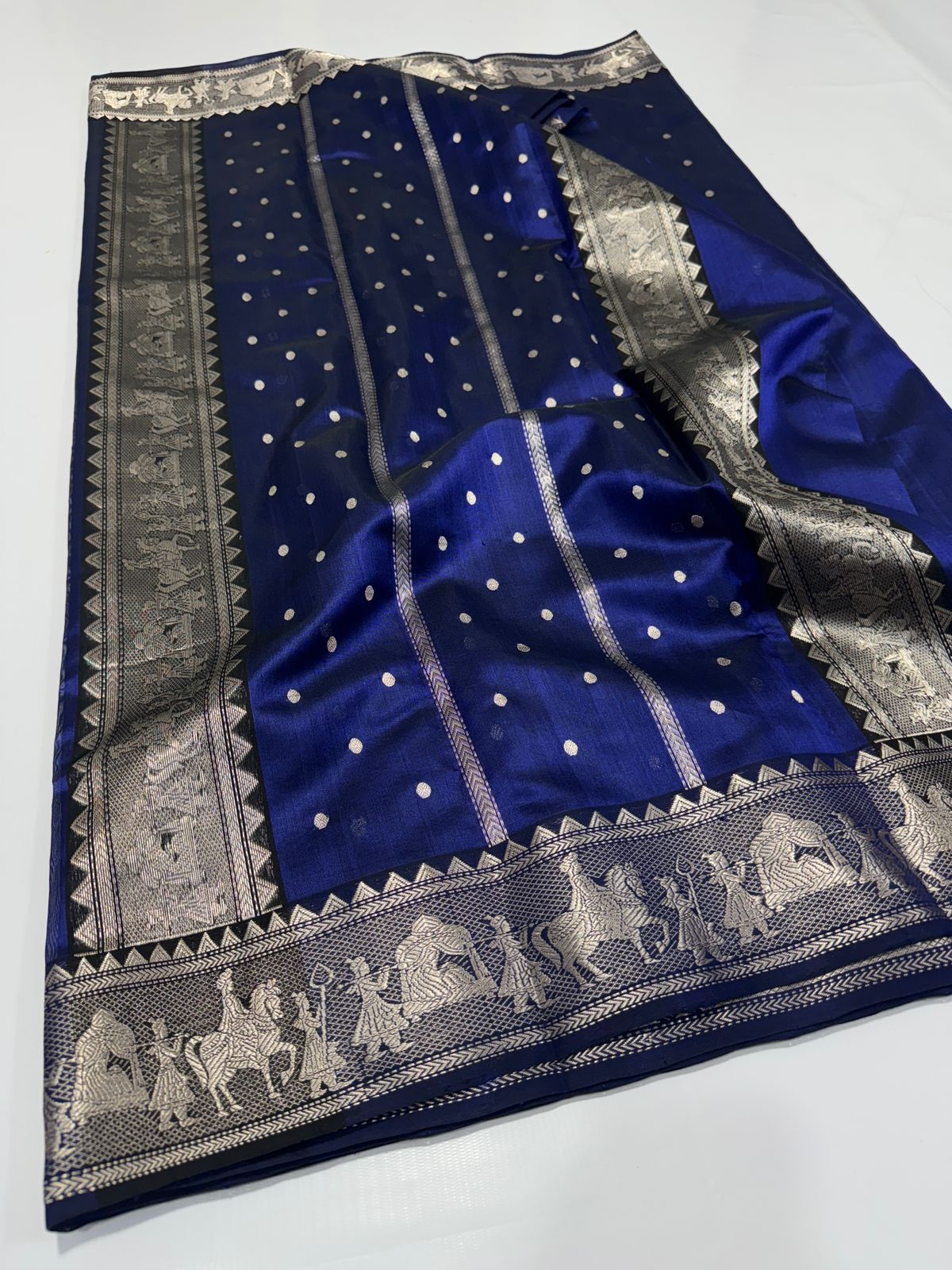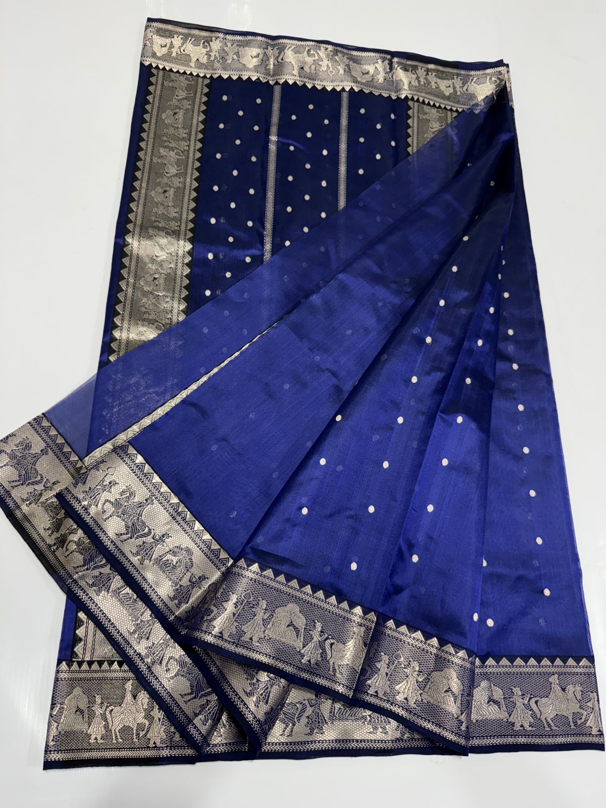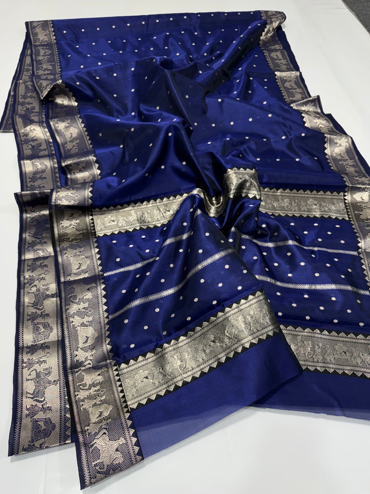 Dark Blue Chanderi Handloom Pattu Silk Sona Rupa Saree