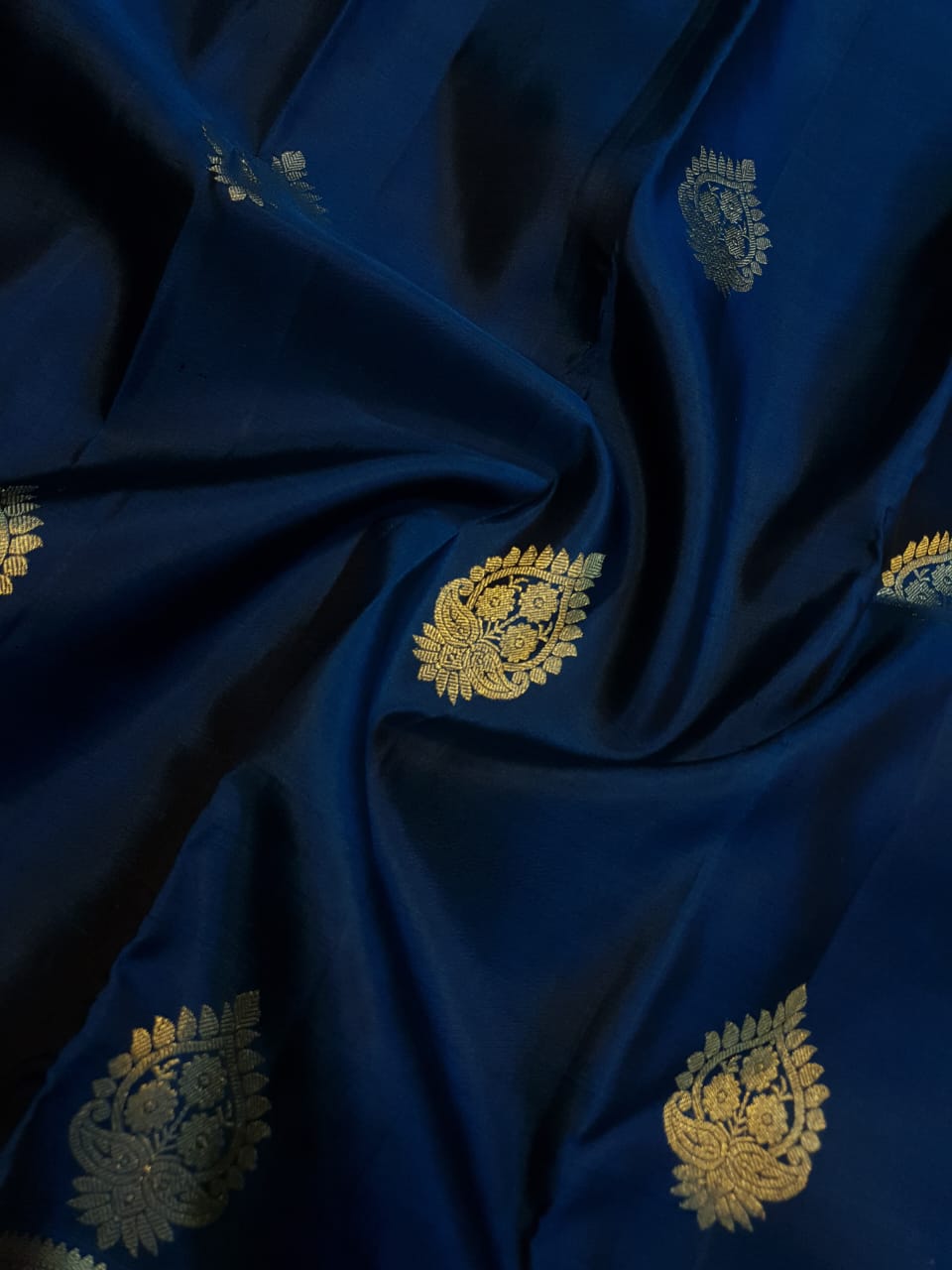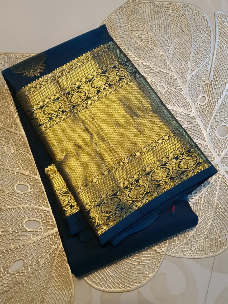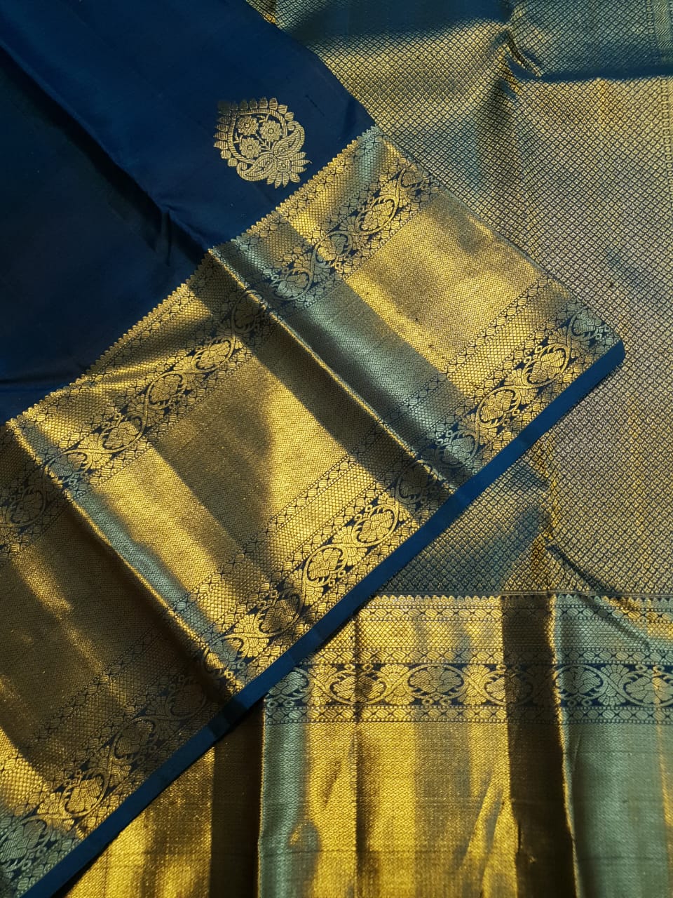 Midnight Blue Kanchipuram Handloom 1G Gold Pattu Silk Saree