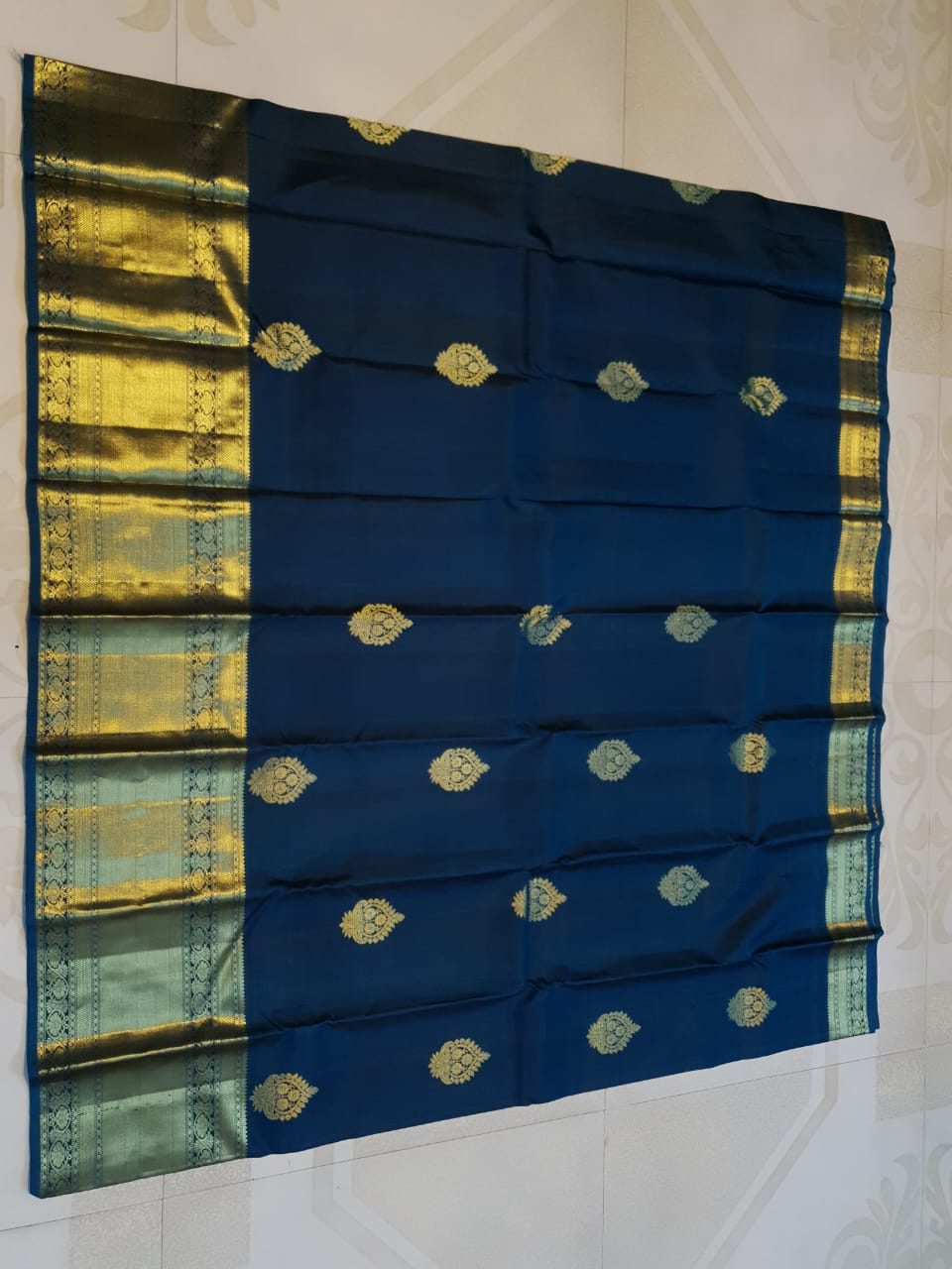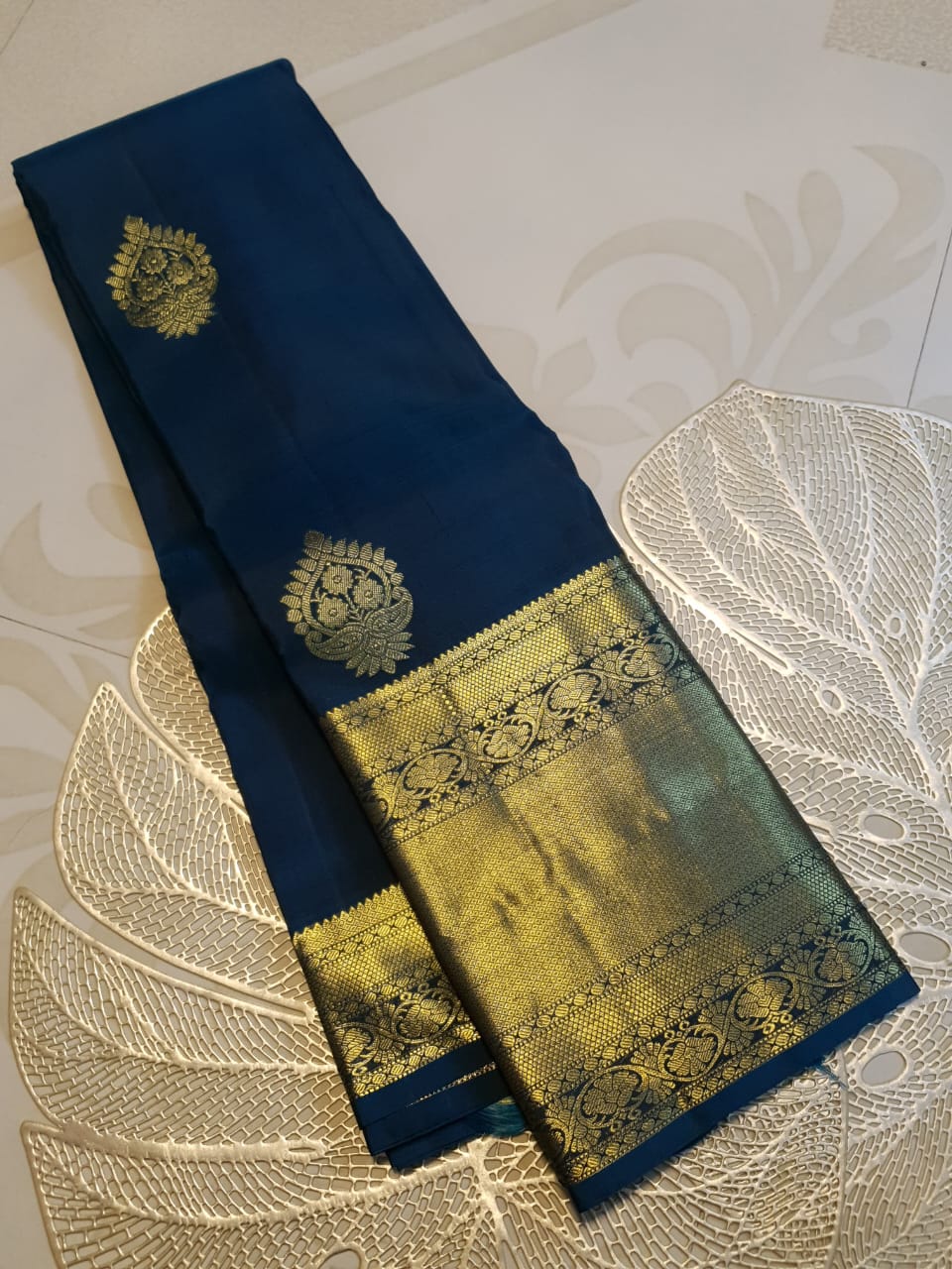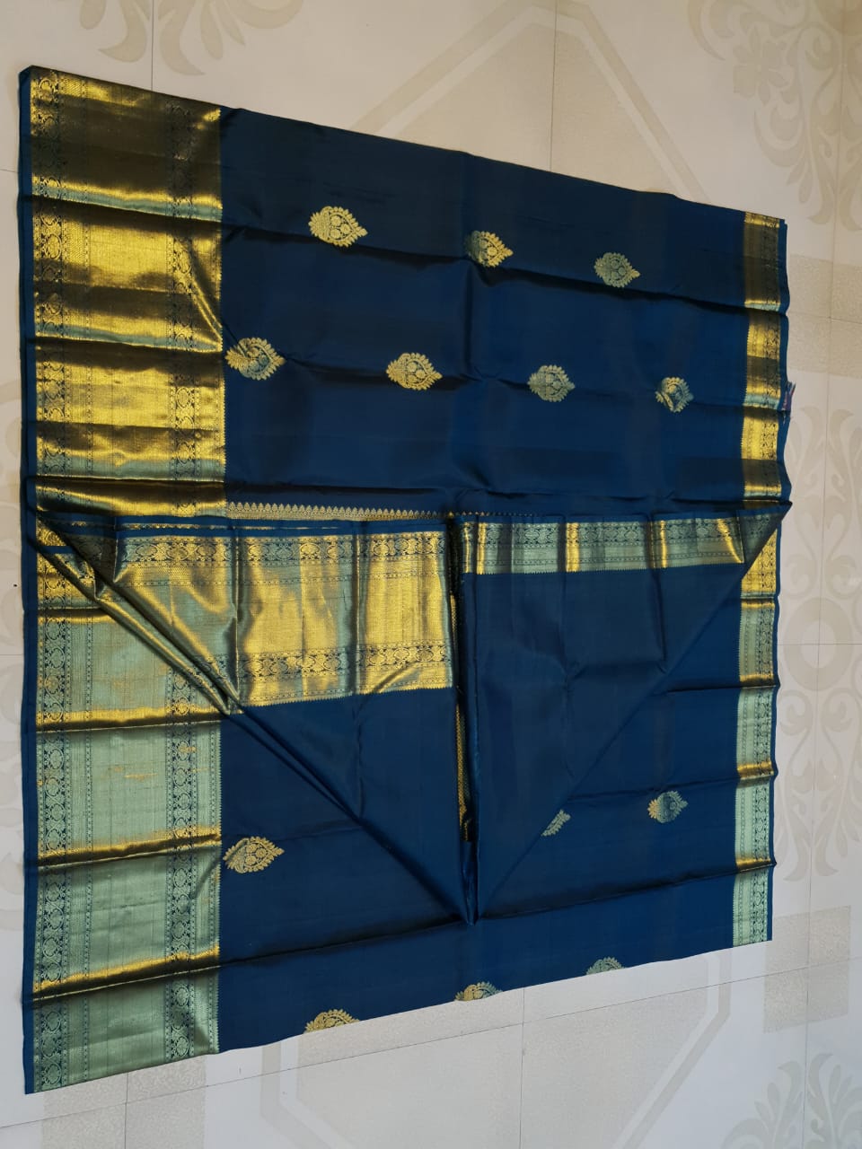 Midnight Blue Kanchipuram Handloom 1G Gold Pattu Silk Saree