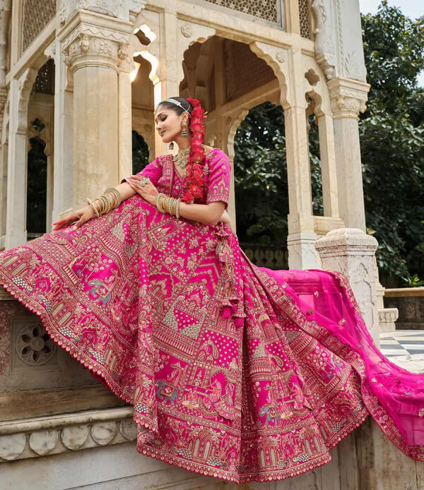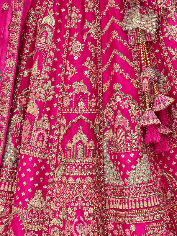 dark pink bridal lehenga, khatli embroidery lehenga, dual dupatta bridal outfit, designer wedding lehenga, heavy bridal wear, modern indian bride, luxury bridal couture, pink wedding attire