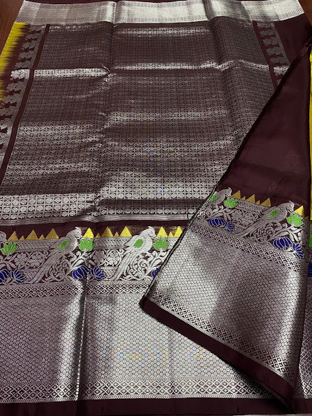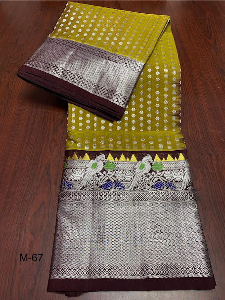 Mustard Venkatagiri Handloom Pattu Silk Meenakari Saree