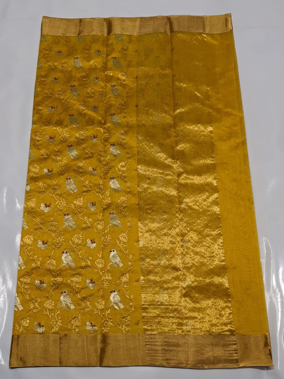 Turmeric Chanderi Handloom Pattu Silk Meenakari Nakshi Saree