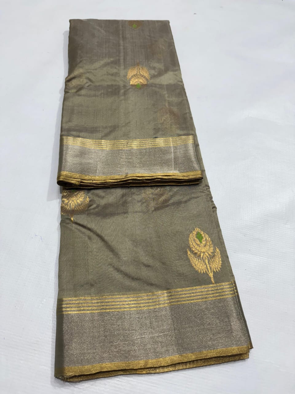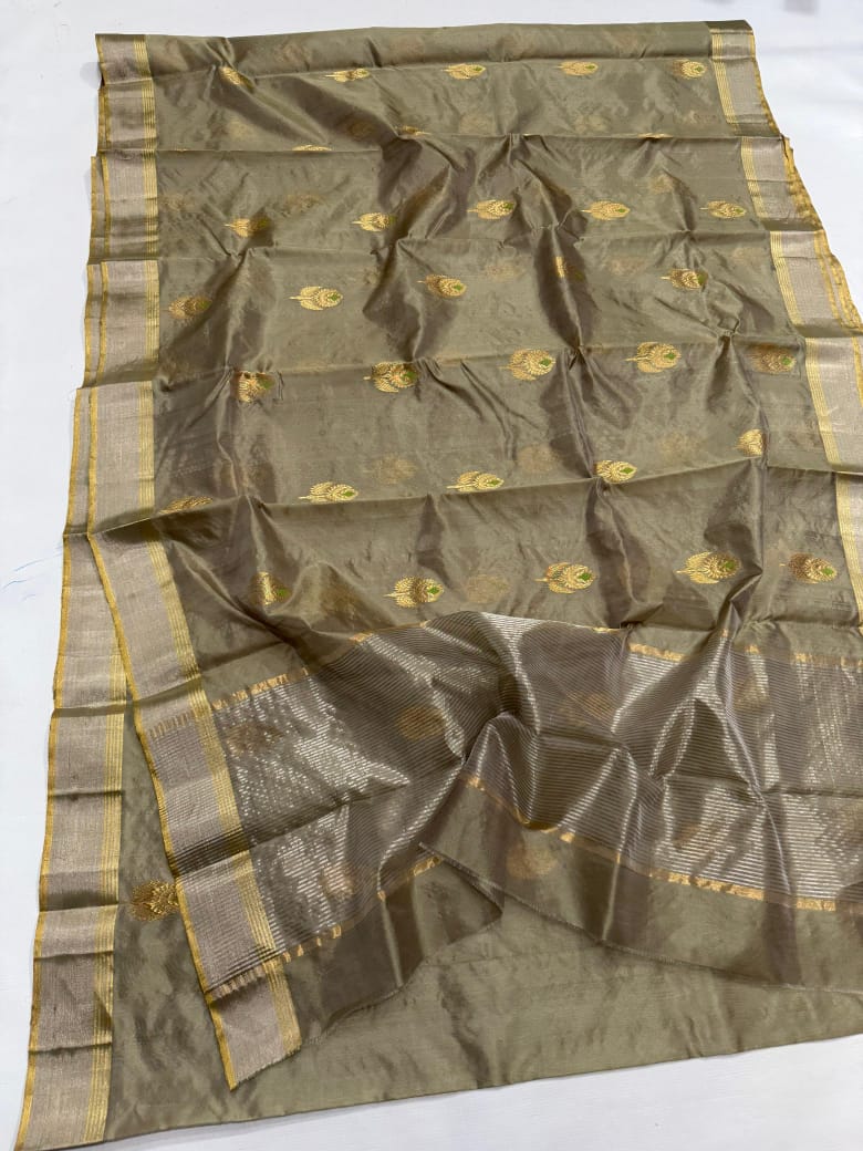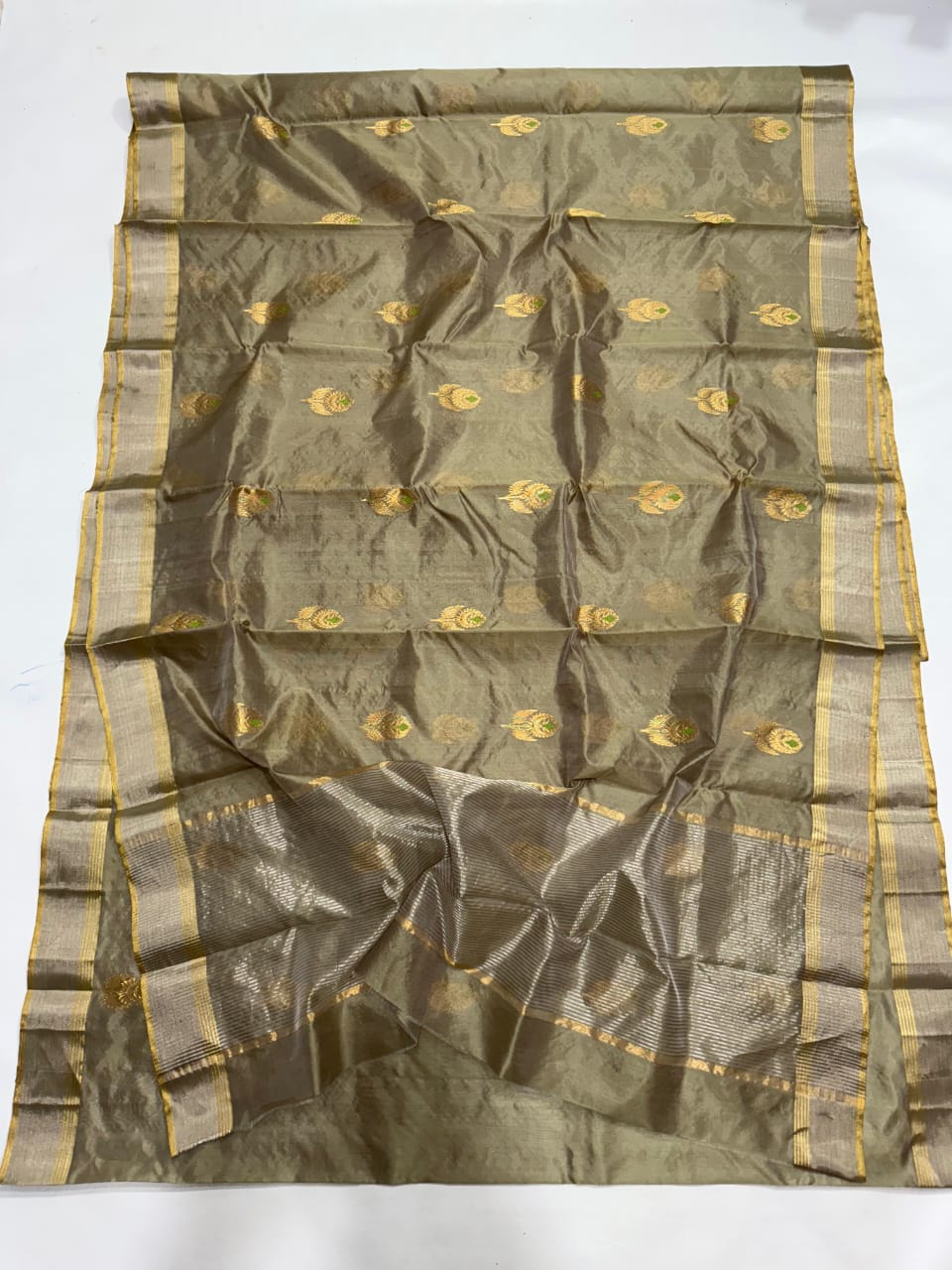 Olive Green Chanderi Handloom Pattu Silk Meenakari Saree