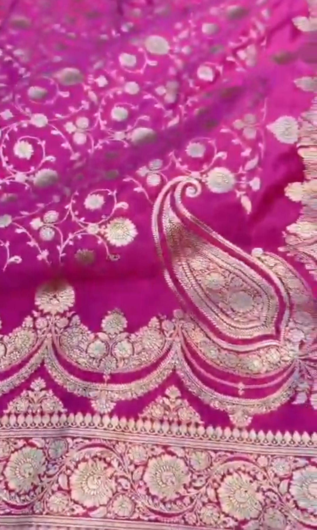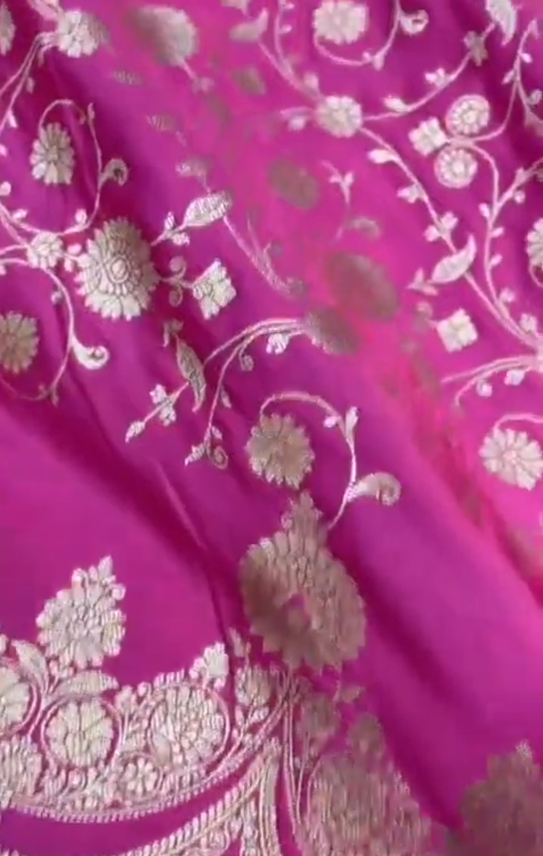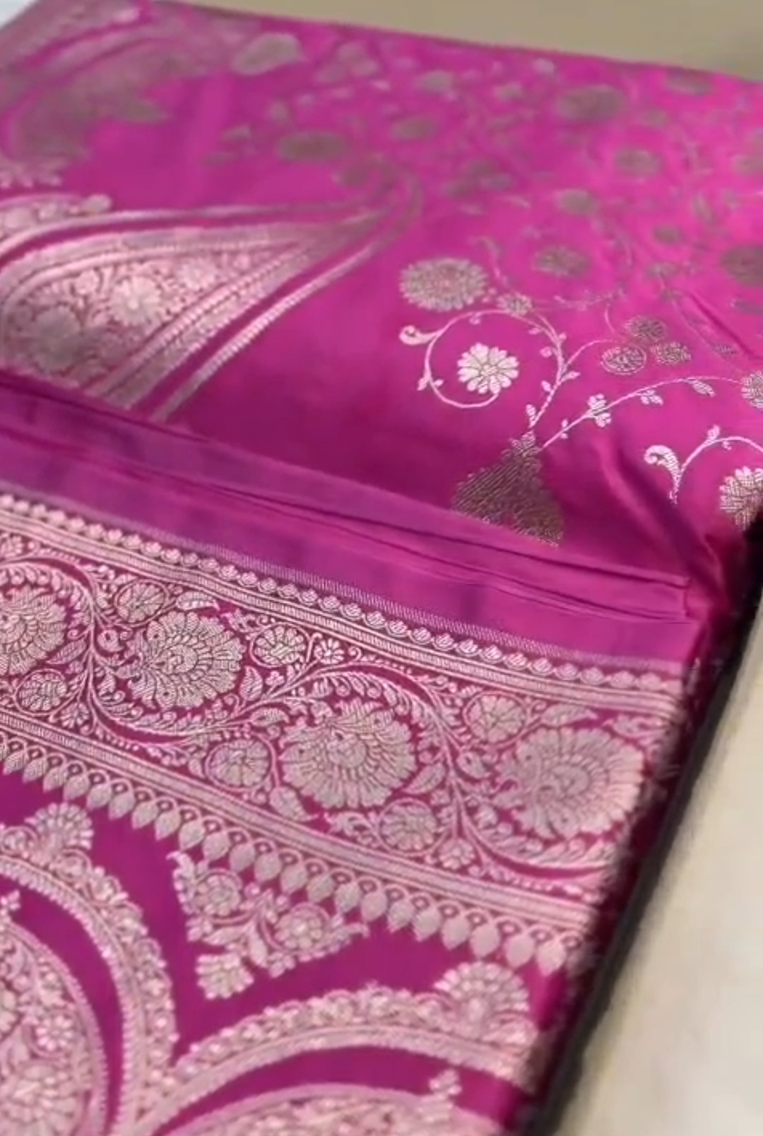 Onion Pink Banarasi Mashru Soft Silk Jangla Saree