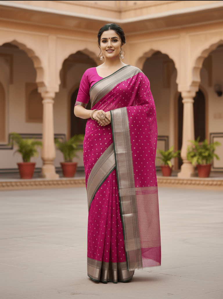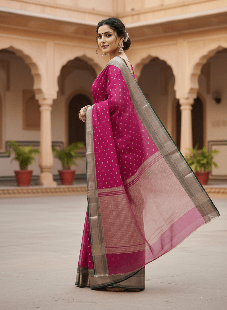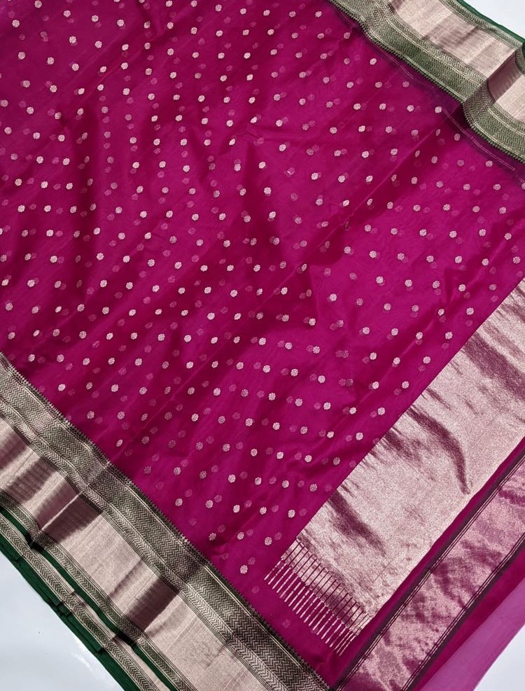 Chanderi Traditional Saree, Chanderi Handloom Pure Katan Silk Handwork Borders Saree, Chanderi Handloom Pure Katan Silk Saree