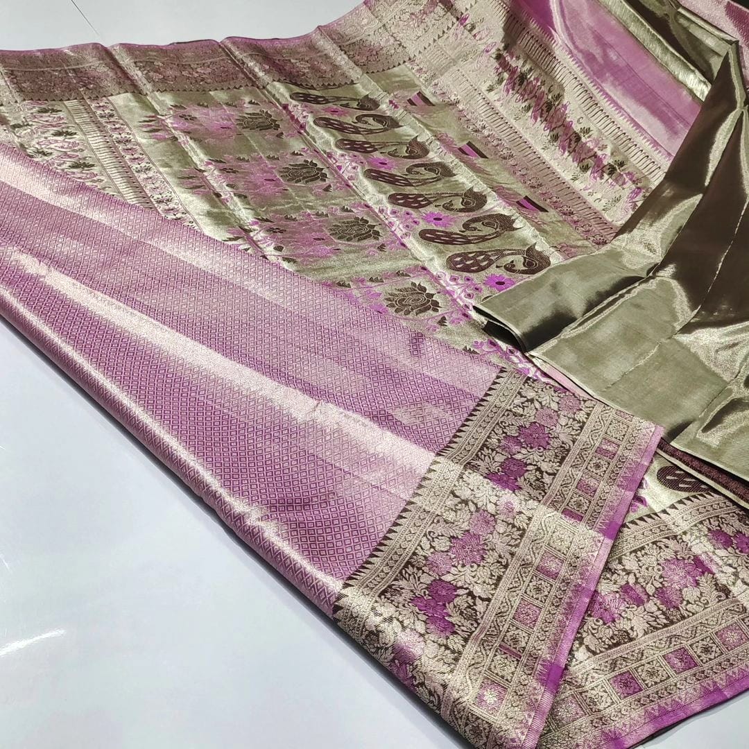 Lavender Kanchipuram Handloom 2D Meena Tissue Brocade Silk Saree
