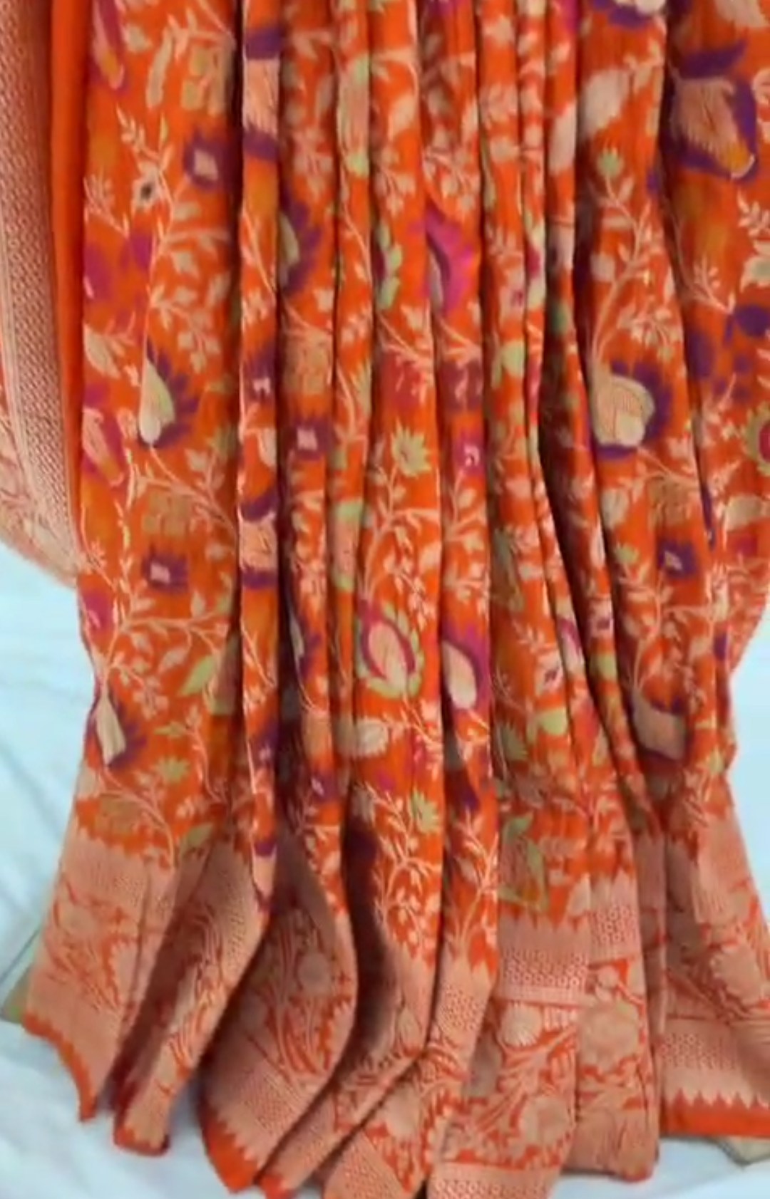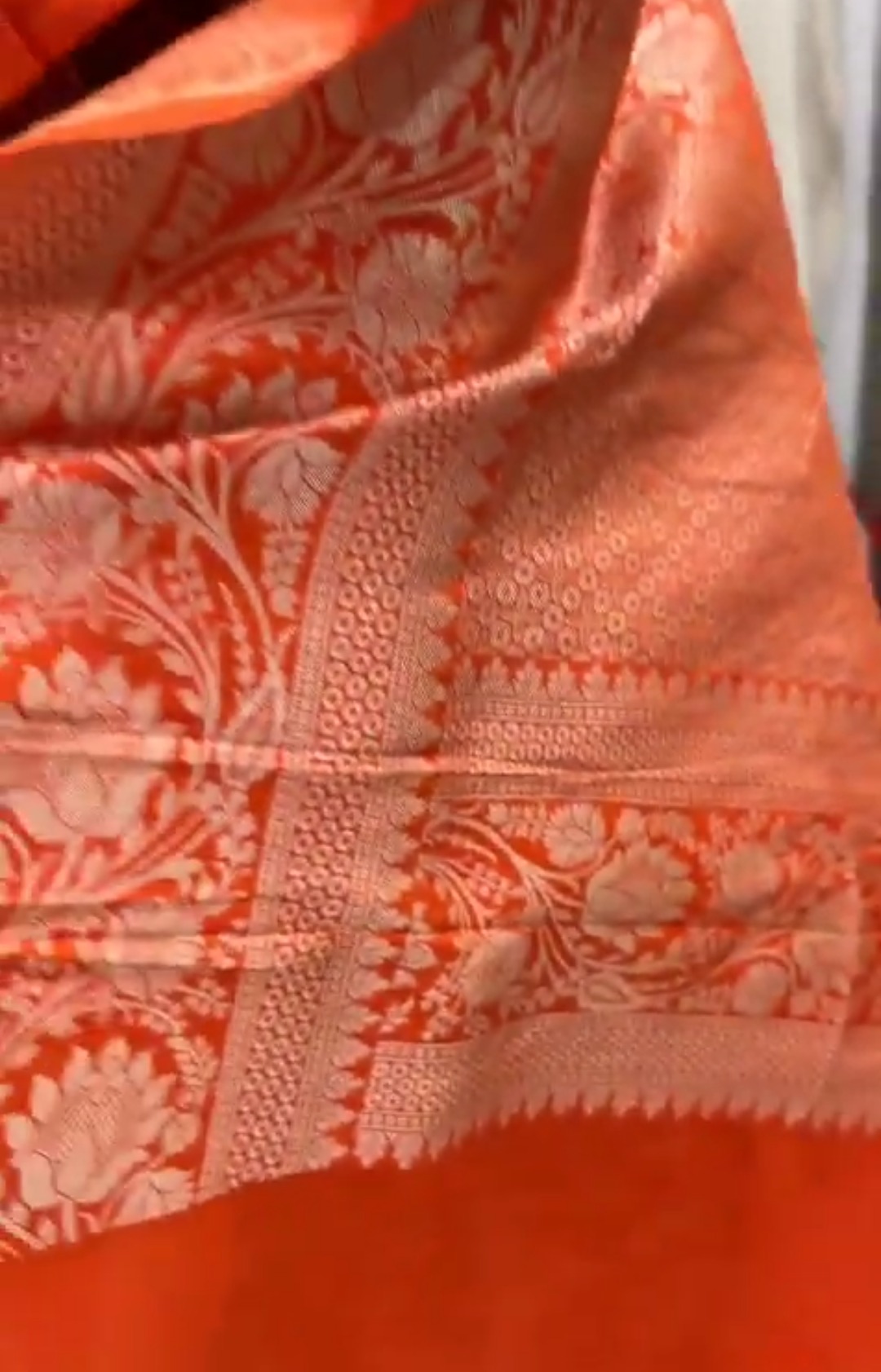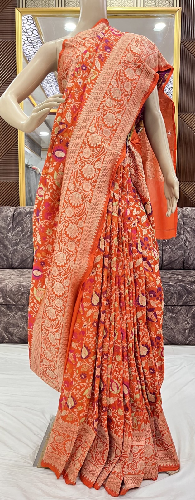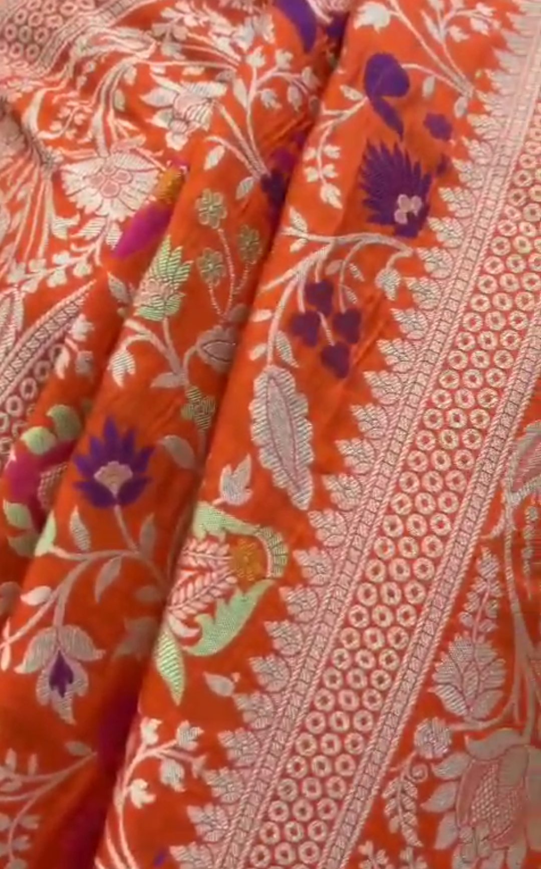 Orange Banarasi Handloom Katan Silk Meenakari Saree