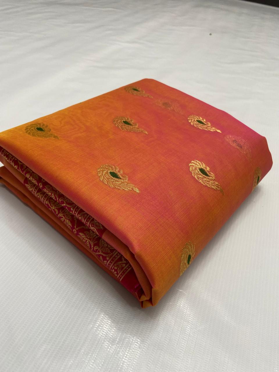 Orange Chanderi Handloom Katan Silk Nakshi Saree