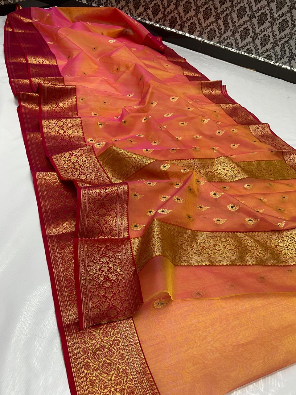 Orange Chanderi Handloom Katan Silk Nakshi Meenakari Saree
