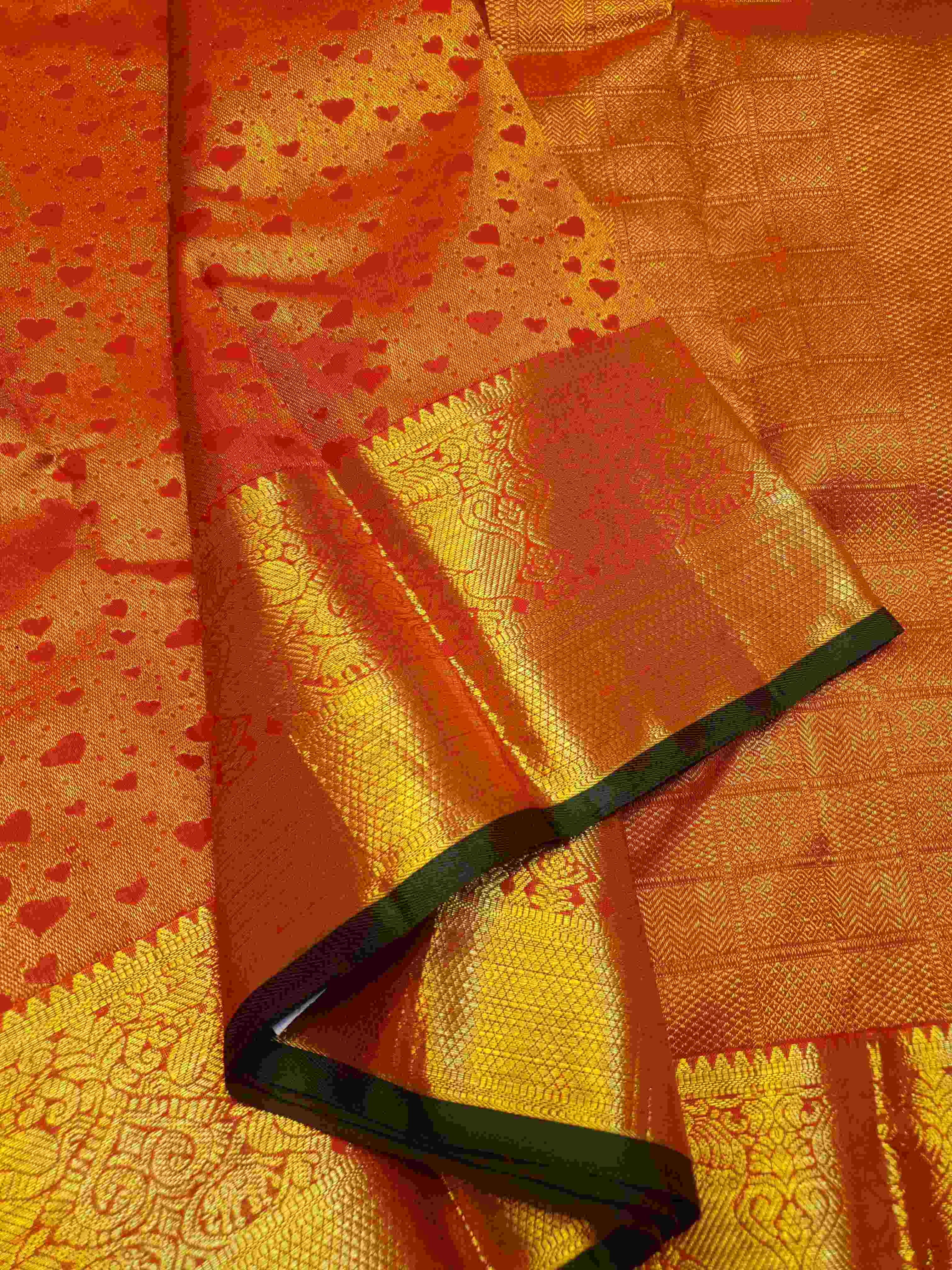 Orange Kanchipuram Handloom 2G Gold Pattu Silk Saree