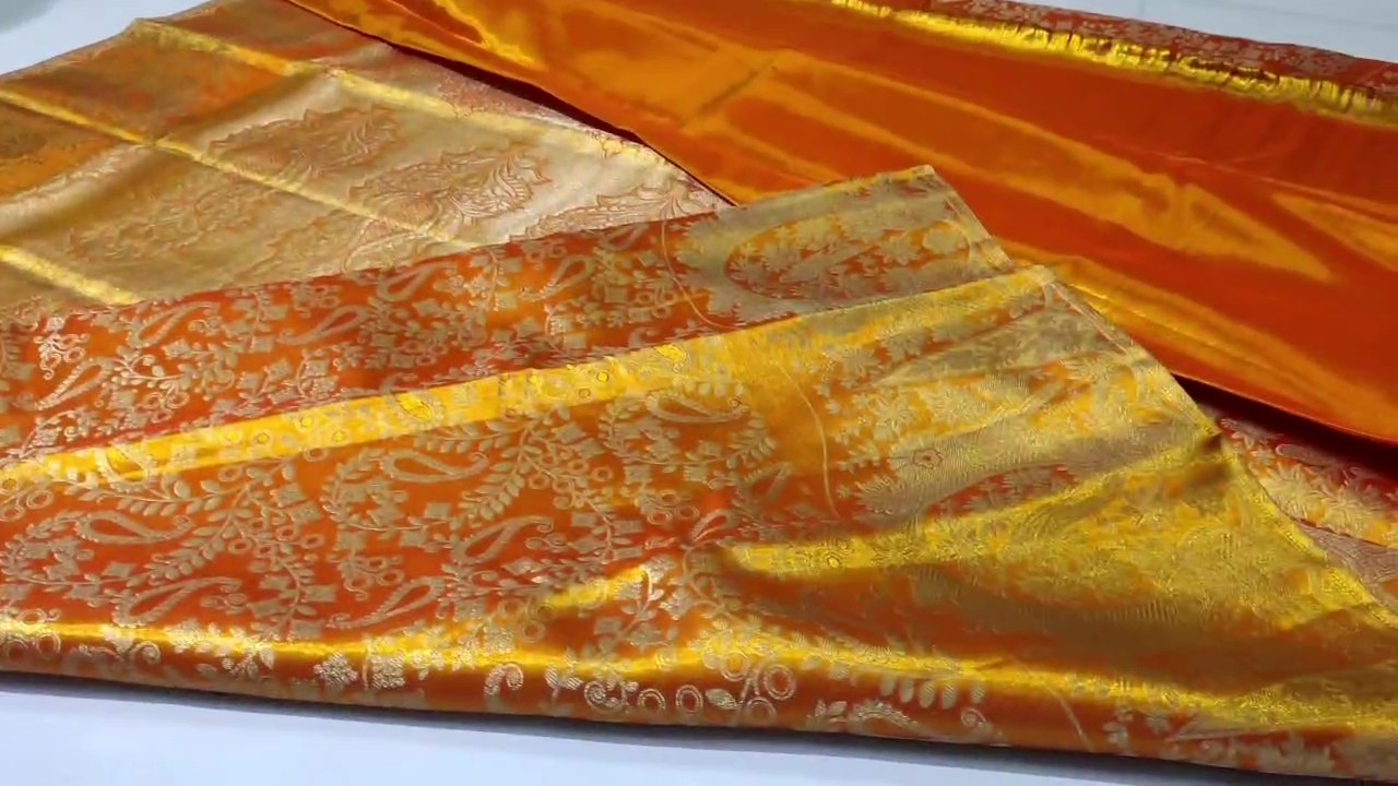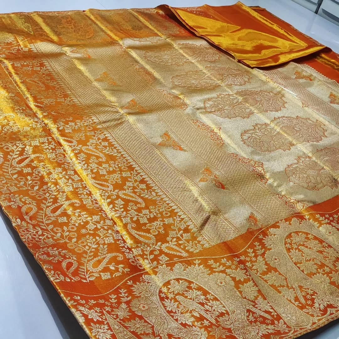 Orange Kanchipuram Handloom Tissue Brocade Silk Saree