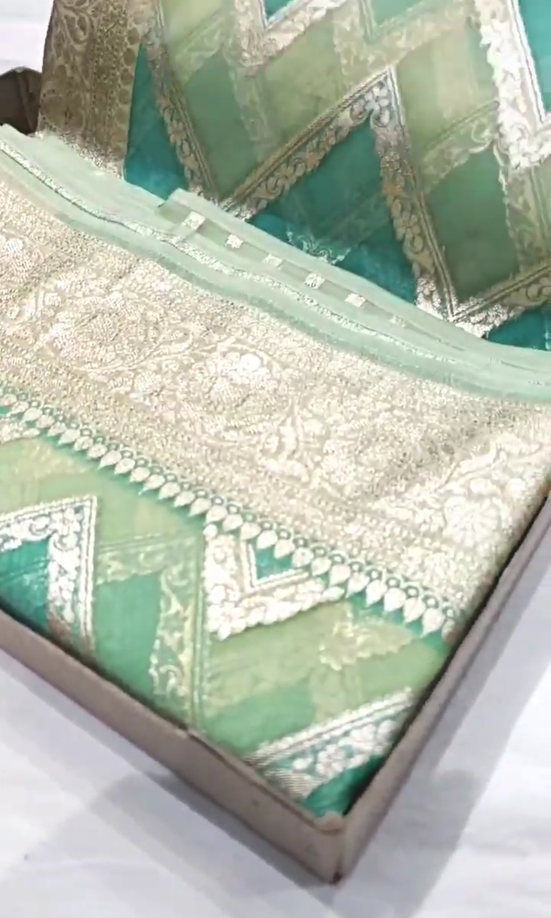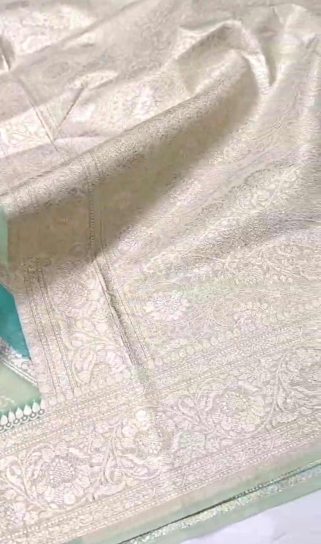 Sea Green Banarasi Handloom Kora Organza Silk Meenakari Saree