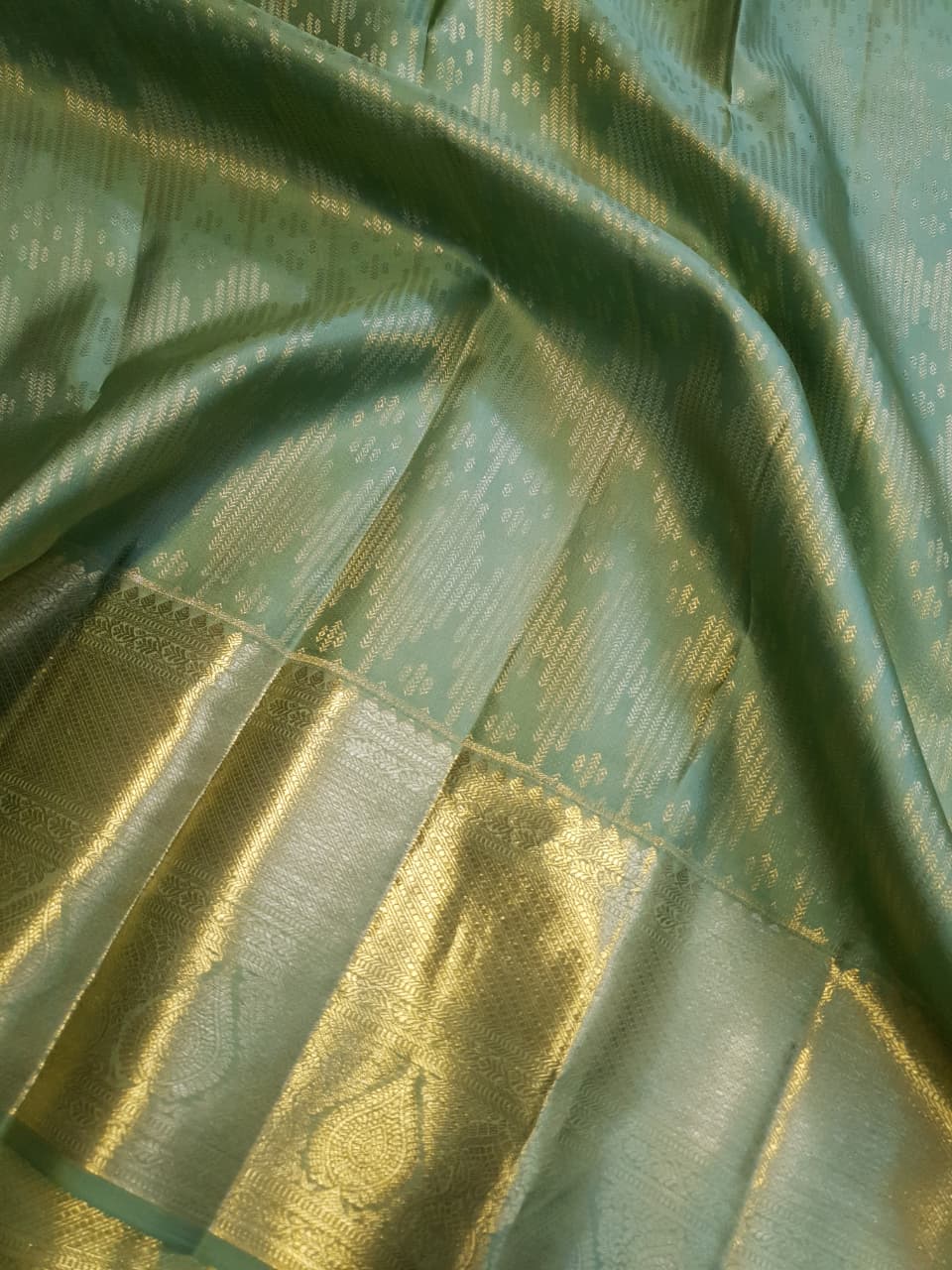 Pastel Green Kanchipuram Handloom 2G Gold Brocade Pattu Silk Saree