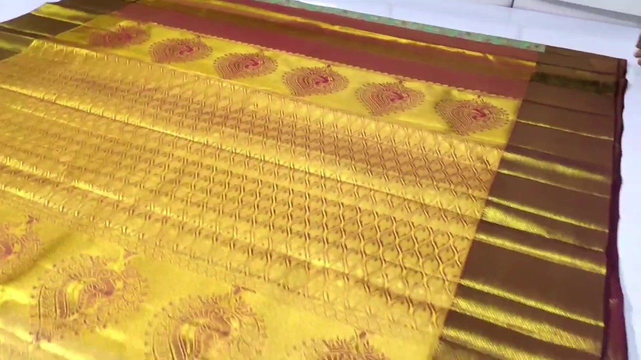 Yellow Kanchipuram Handloom Tissue Brocade Meenakari Silk Saree