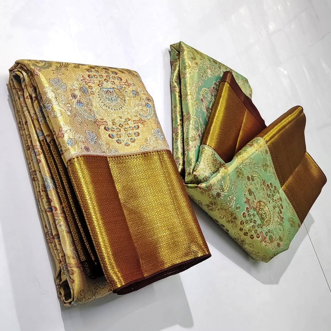 Gold Kanchipuram Handloom Tissue Brocade Silk Saree