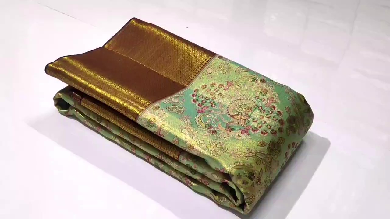 Pastel Green Kanchipuram Handloom Tissue Brocade Meenakari Silk Saree