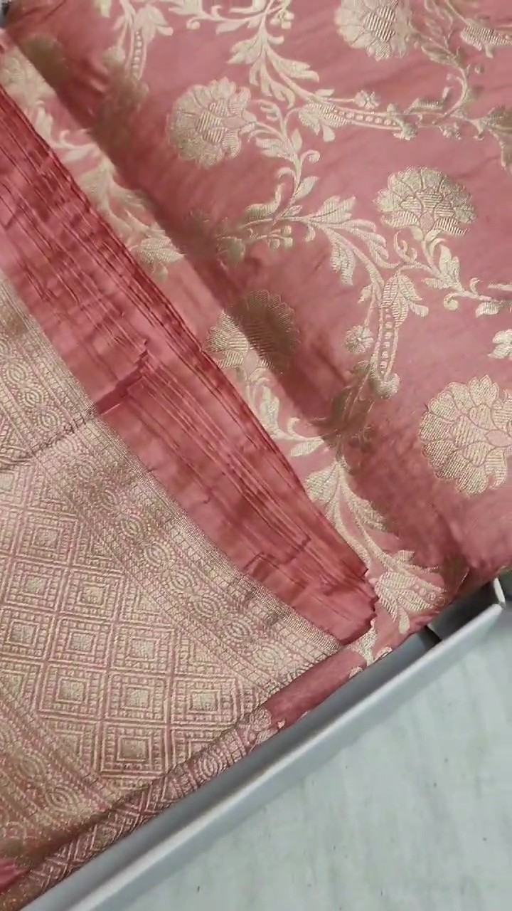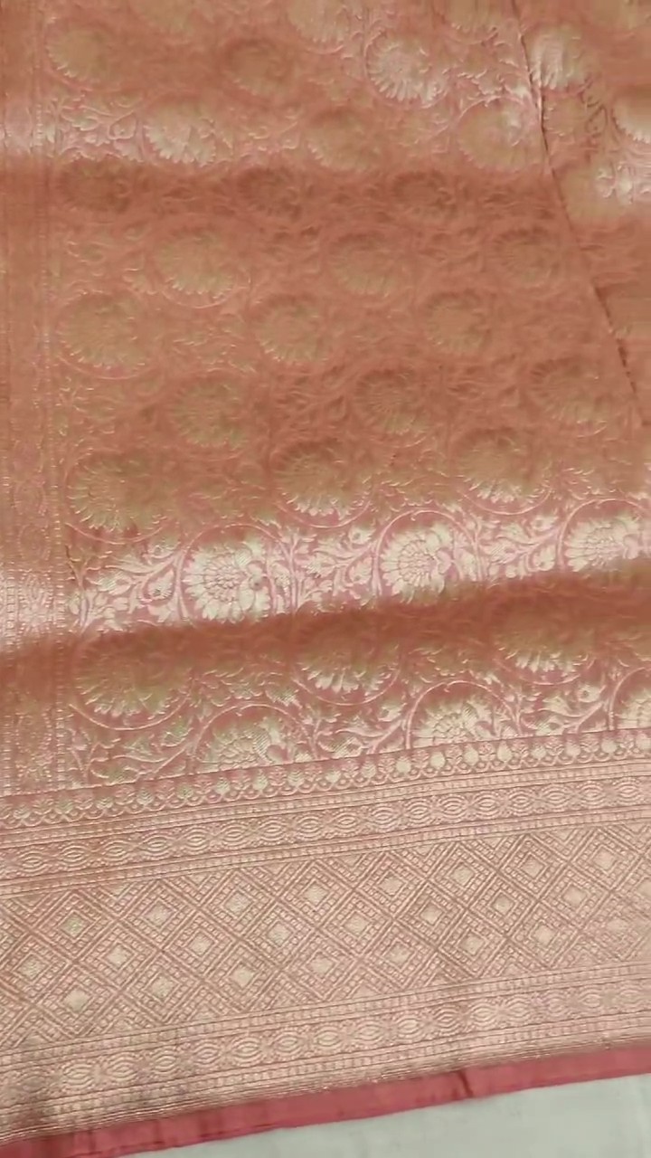 Pinkish Beige Banarasi Handloom Katan Silk Brocade Saree