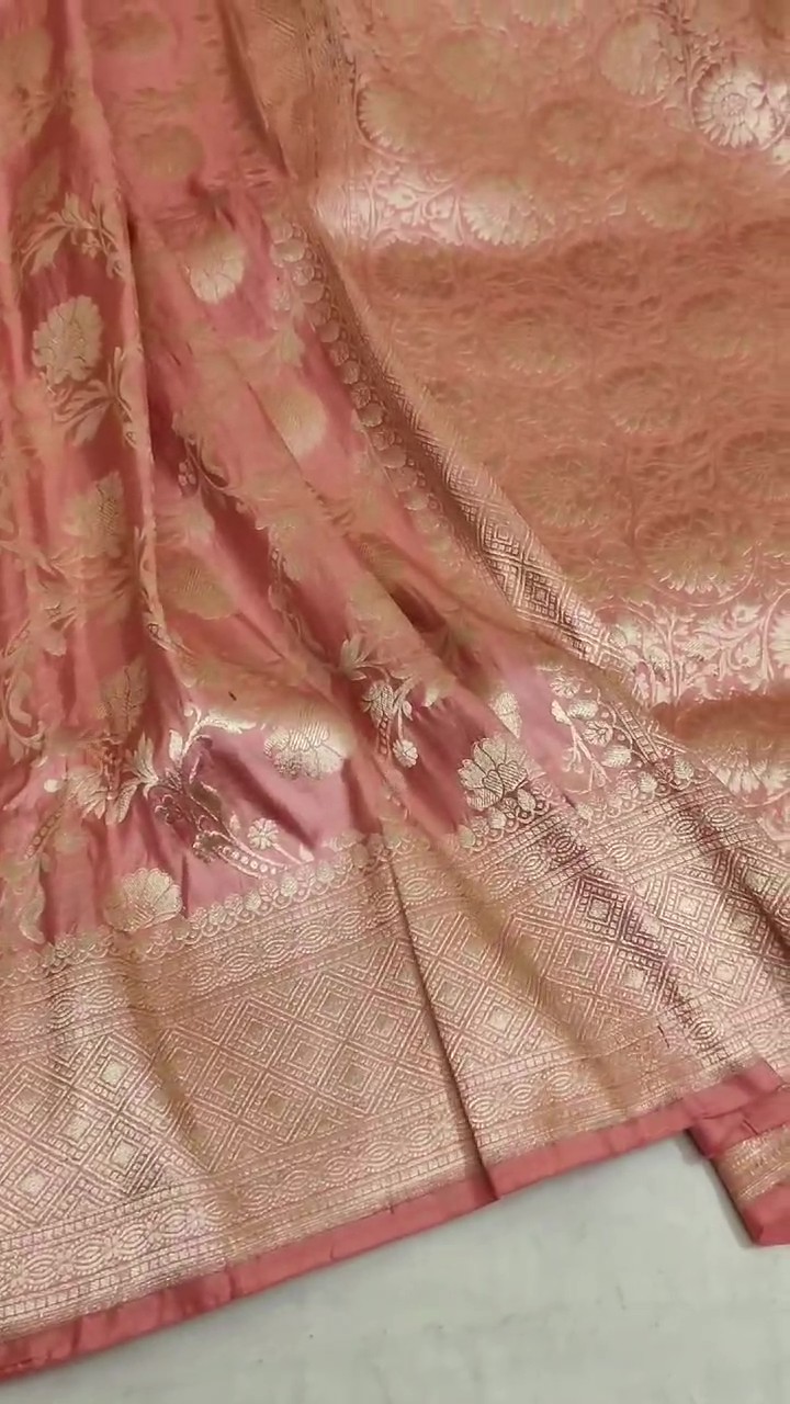 Pinkish Beige Banarasi Handloom Katan Silk Saree