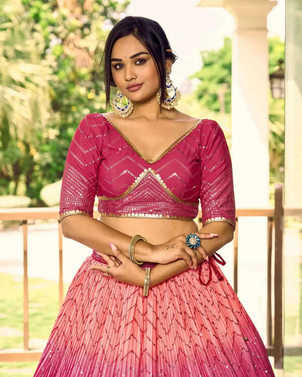 Peach & Pink Lehenga Choli with Thread & Sequins Work