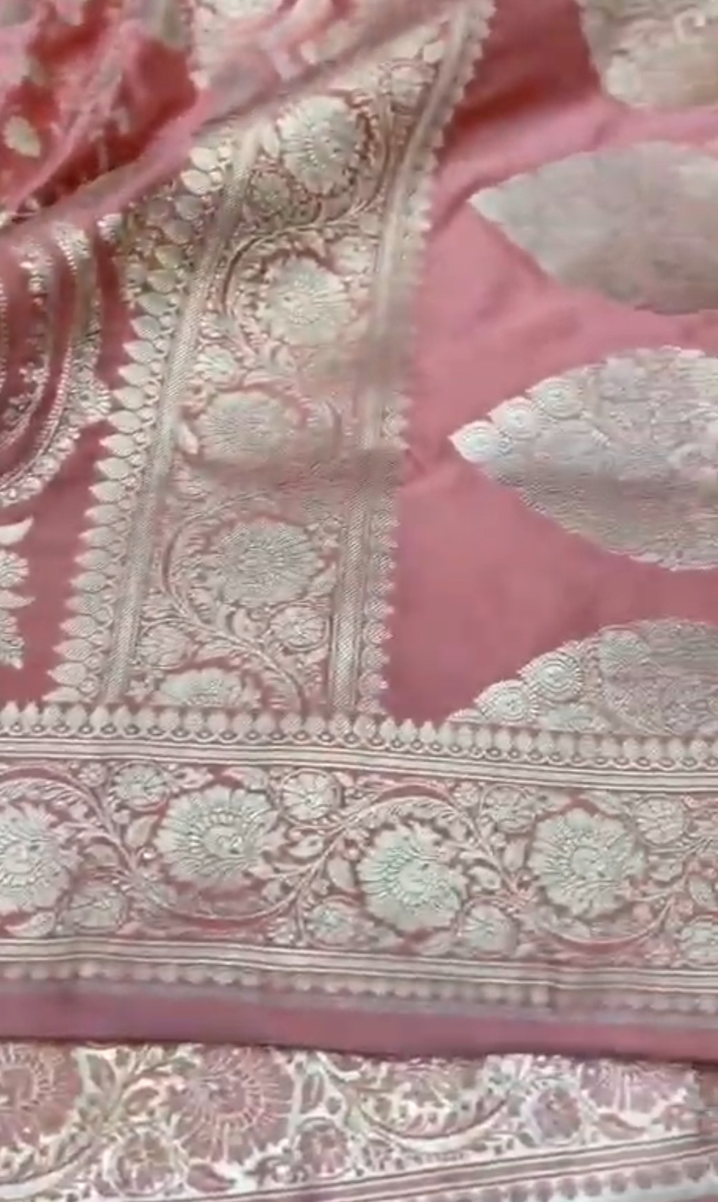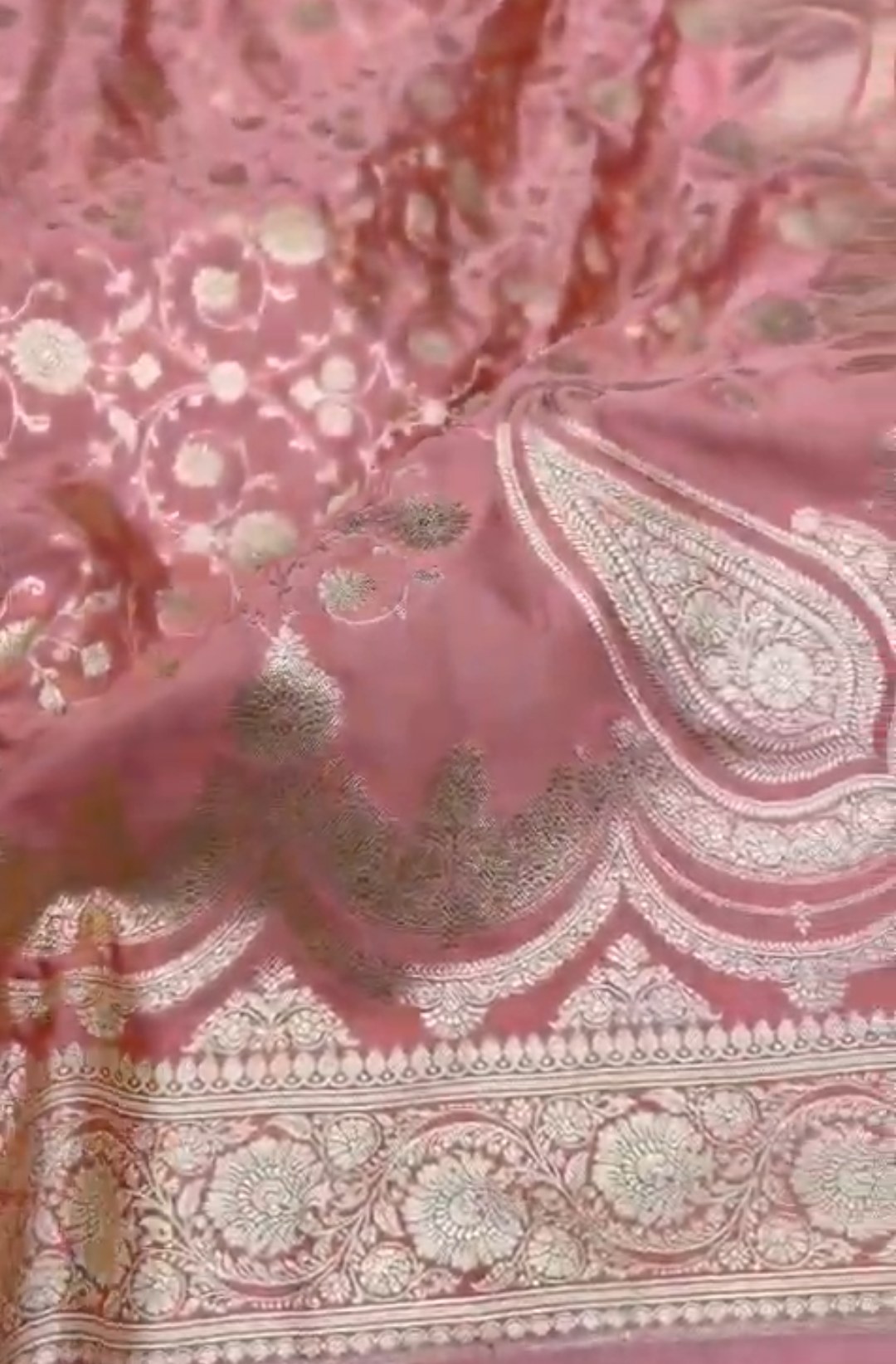Peach Banarasi Mashru Soft Silk Jangla Saree
