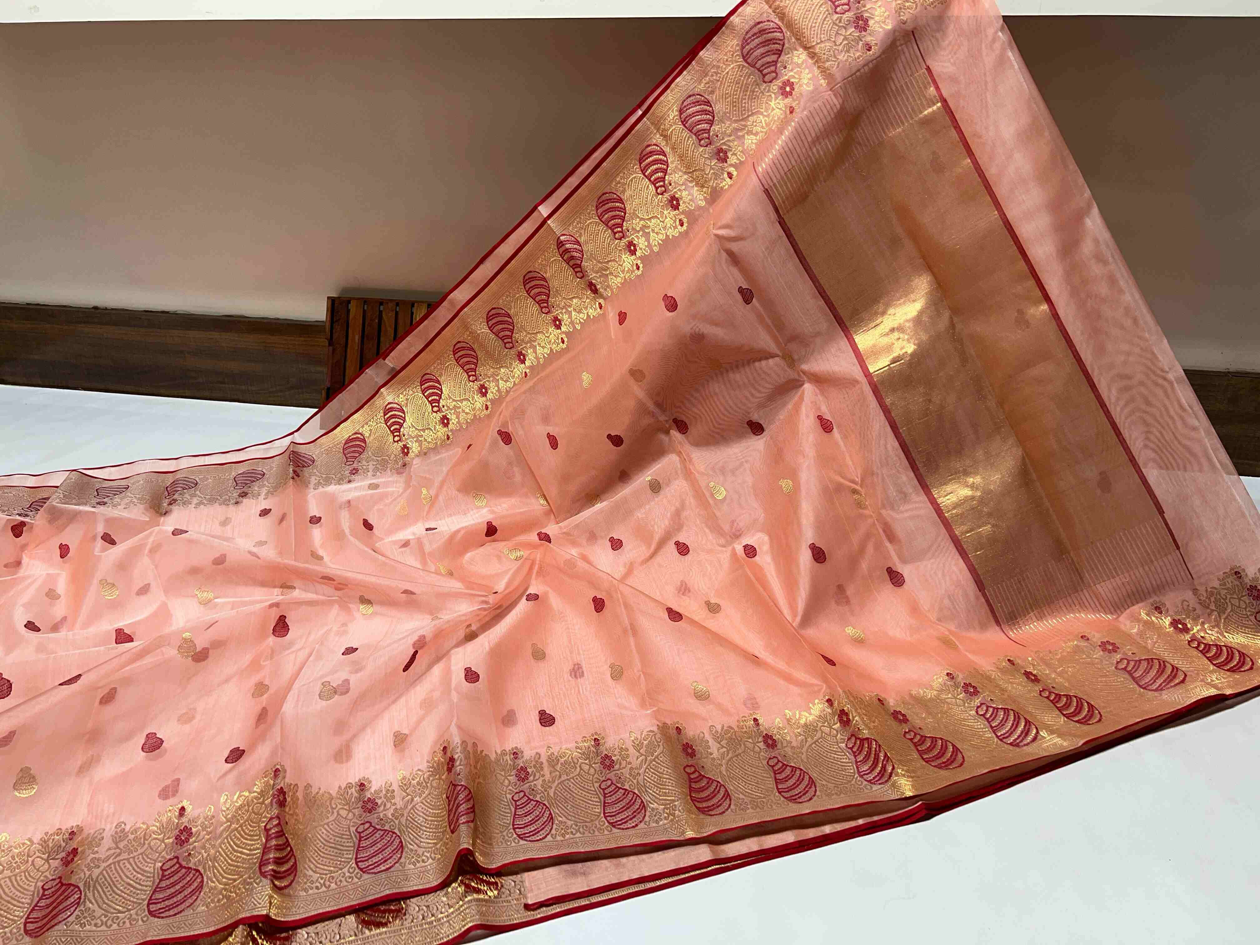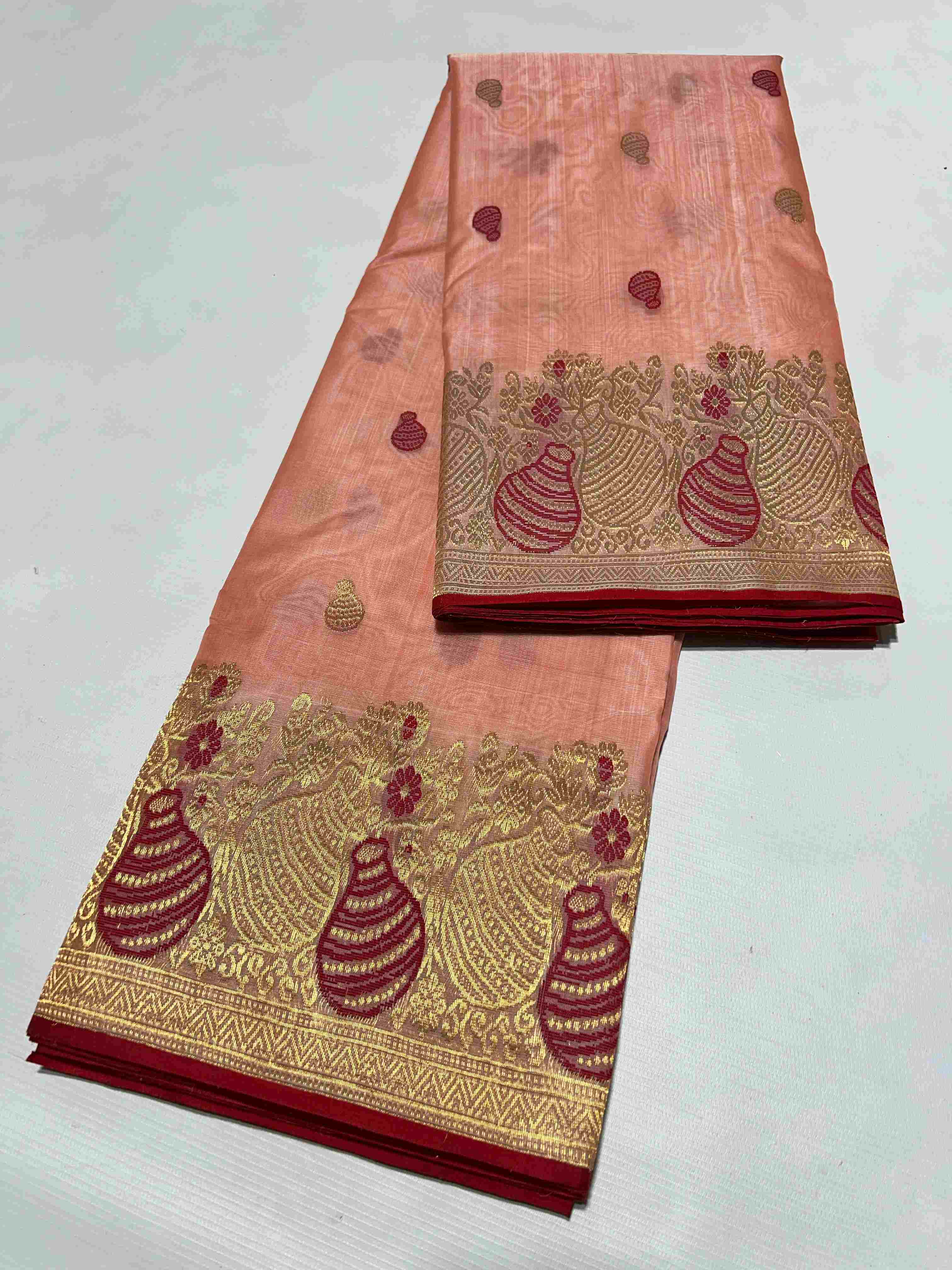 Peach Chanderi Handloom Katan Silk Meenakari Saree
