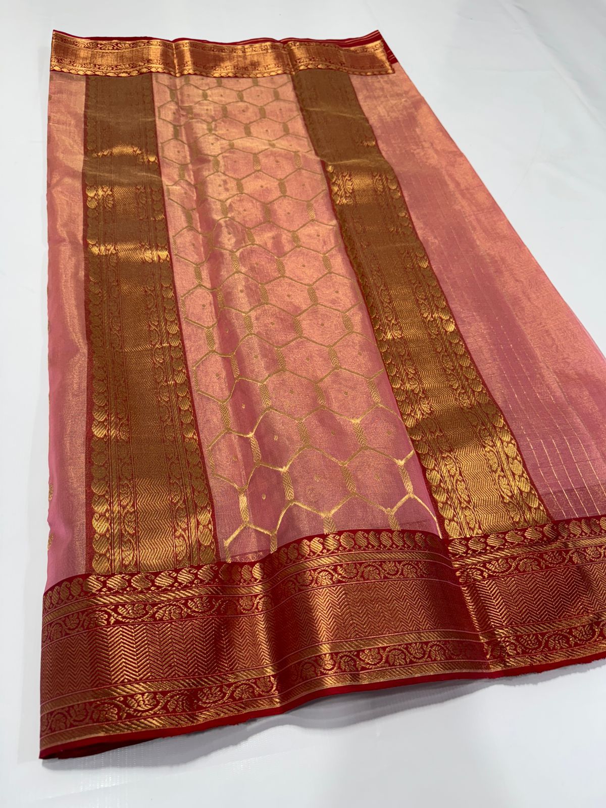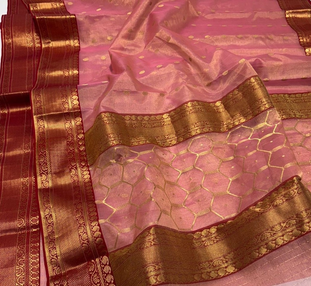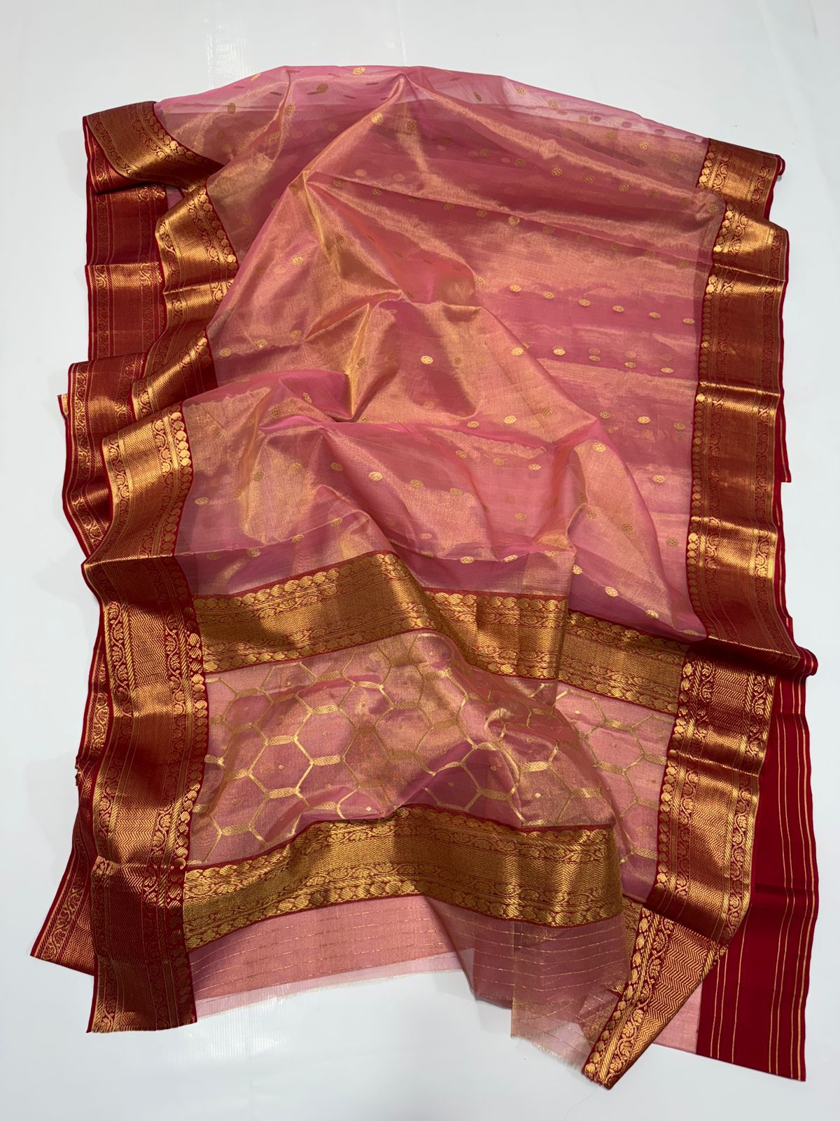 Pink Chanderi Handloom Katan Tissue Silk Saree