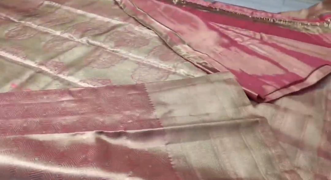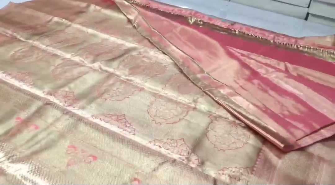 Onion Pink Kanchipuram Handloom Tissue Brocade Silk Saree