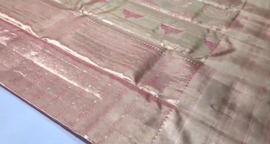 Pinkish Beige Kanchipuram Handloom Tissue Brocade Silk Saree