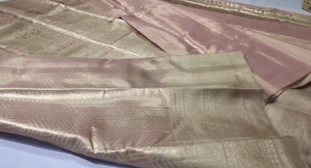 Onion Pink Kanchipuram Handloom Tissue Brocade Silk Saree