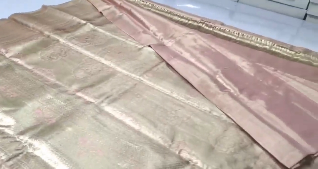 Pinkish Beige Kanchipuram Handloom Tissue Brocade Silk Saree